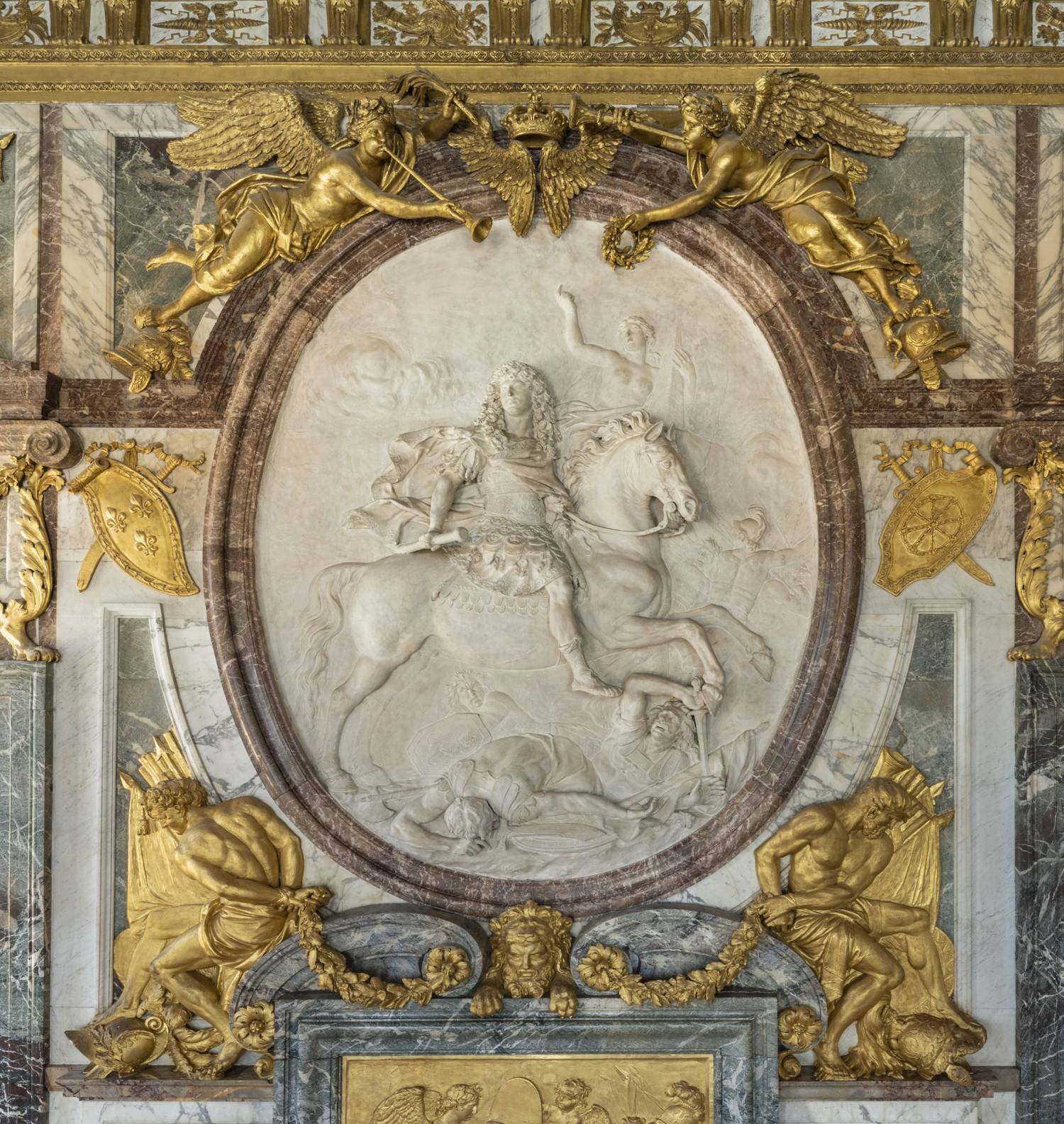 Décor de la cheminée du salon de la Guerre,