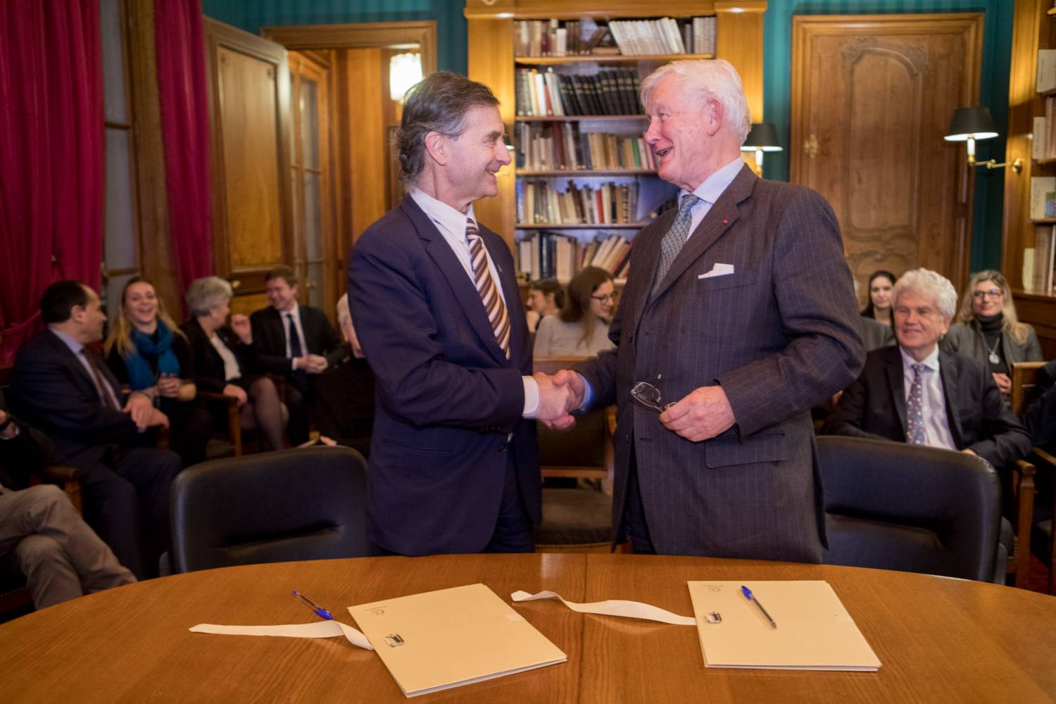M. Etienne de Magnitot, président de Crédit Agricole d’Ile de France Mécénat et du Crédit Agricole d’Ile de France, et M. Olivier de Rohan Chabot, Président de la Fondation pour la Sauvegarde de l’Art FrançaisLe 6 février dernier, le Crédit Agricole d’Île-de-France Mécénat a officiellement renouvelé son soutien à la Fondation pour la Sauvegarde de l’Art Français. Dans le cadre de la campagne du Plus Grand Musée de France, de nouvelles œuvres d’art d’Île-de-France seront restaurées durant les deux prochaines années.