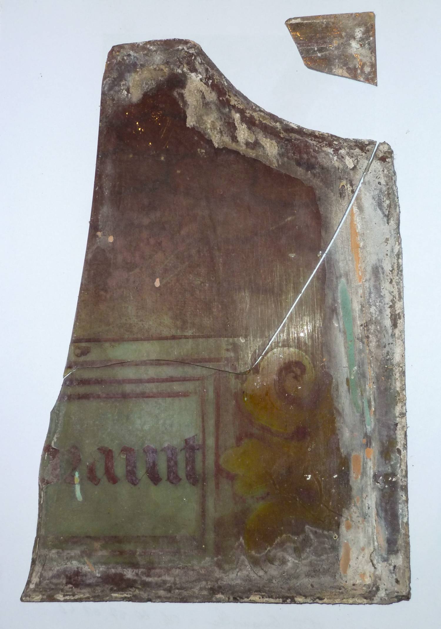à la grisaille et au jaune d’argent et comportant un élément d’inscription a été retrouvée par hasard il y a quelques mois lors du démontage des