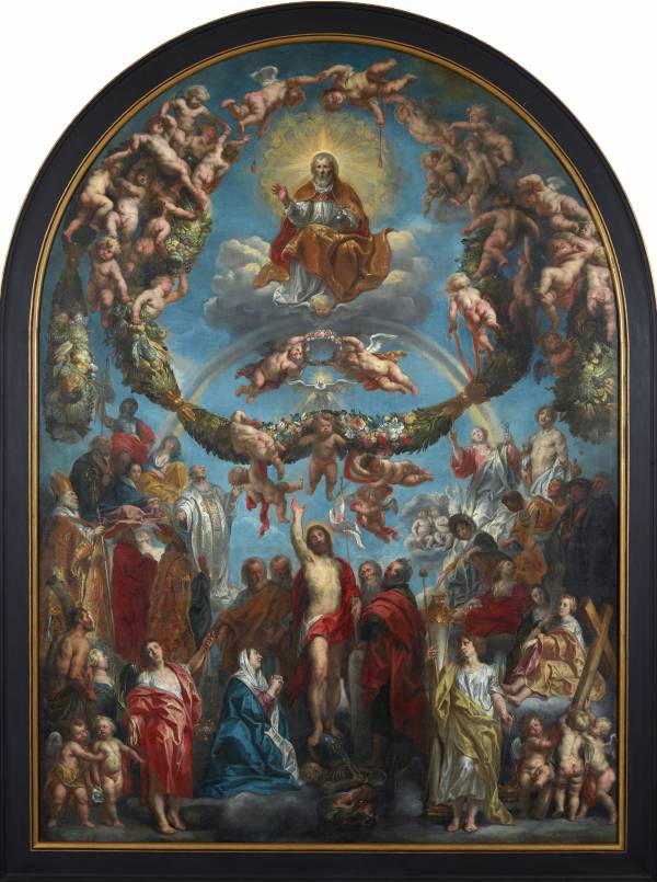 La Trinité entourée de Saints – Cette œuvre spectaculaire, conservée dans l’église Notre-Dame d’Argentré-du-Plessis (Ille-et-Vilaine), est attribuée au peintre flamand Jacob Jordaens et son atelier (XVIIème siècle). Le don de 8 000€ va permettre l’enlèvement des repeints les plus débordants et l’application d’un vernis plus brillant, conforme à ceux qui étaient appliqués sur les œuvres flamandes de cette époque, rendant ainsi tout son lustre au tableau avant sa remise en place dans l’église.