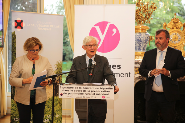 Jeudi 14 juin 2018, le Conseil départemental des Yvelines représenté par Joséphine Kollmannsberger, l’agence IngénierY, présidée par Philippe Benassaya et la Fondation pour la Sauvegarde de l’Art Français, présidée par Olivier de Rohan Chabot, ont signé un partenariat innovant pour accompagner les communes rurales yvelinoises dans la conservation préventive des édifices historiques.