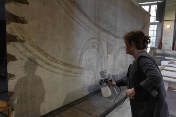 La toile quitte Saint-Laurent-sur-Oust en début d’année pour les ateliers de restauration OCRE près de Rennes.