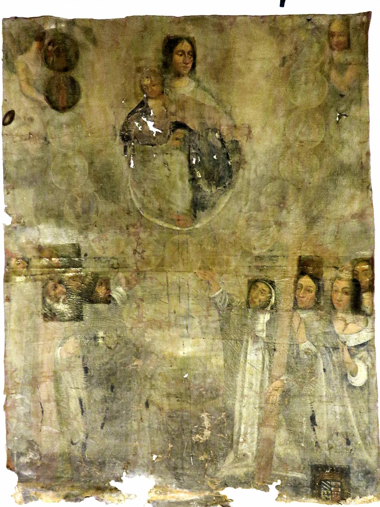 La toile, datée du milieu du XVIIème siècle, était oubliée depuis des années dans le grenier du presbytère. Très dégradée, l’œuvre retrouve son éclat et révèle la richesse de son iconographie.