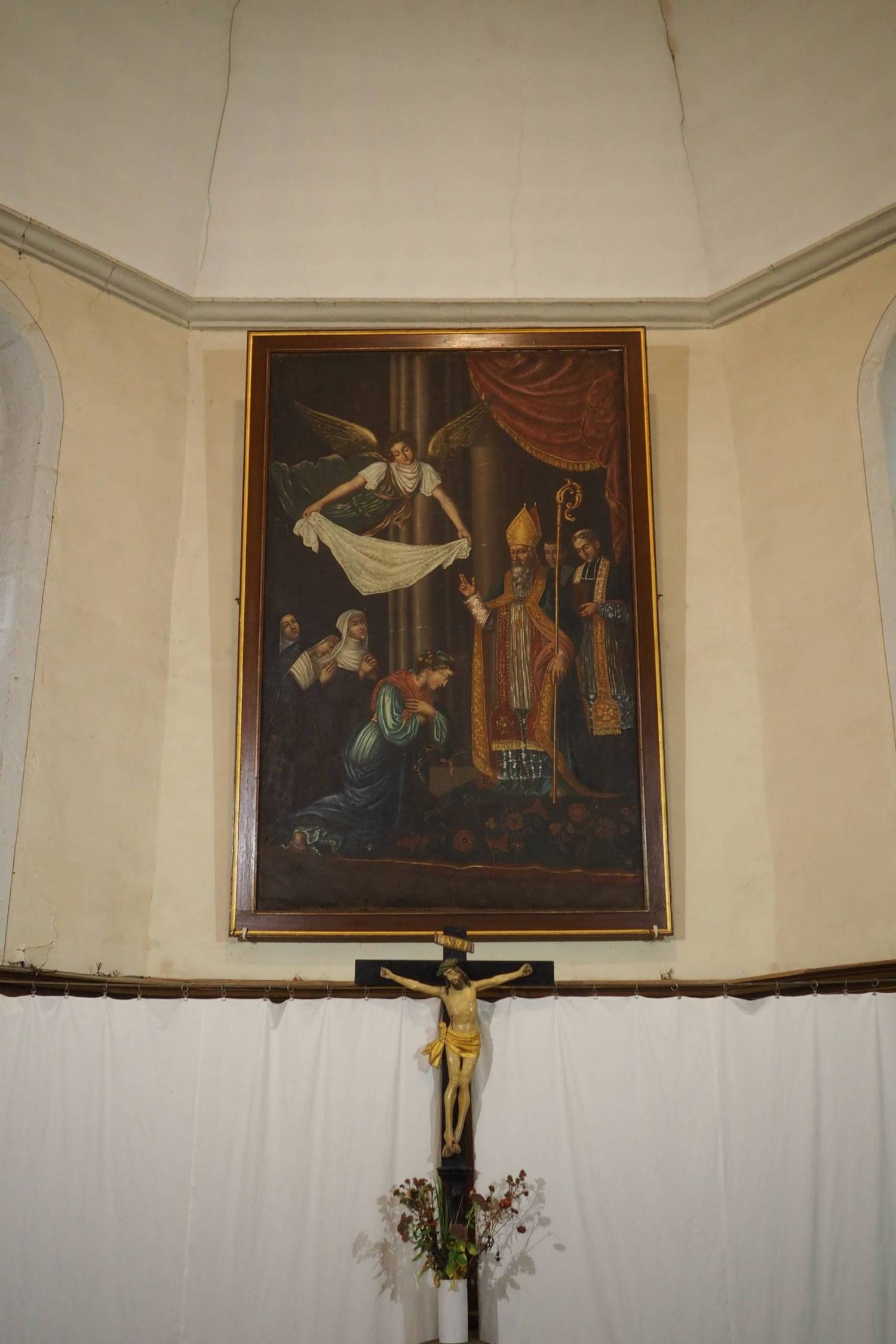 Dans la chapelle de l’hôpital de Charlieu (42), cette Vierge à l’enfant couronnée du XVIIe s. est un témoignage de l’histoire de la commune. Elle est à la fois «Vierge de douleur» pour les malades mais aussi sainte patronne des tisserands de la ville, qui la célèbre encore aujourd’hui tous les 15 septembre.