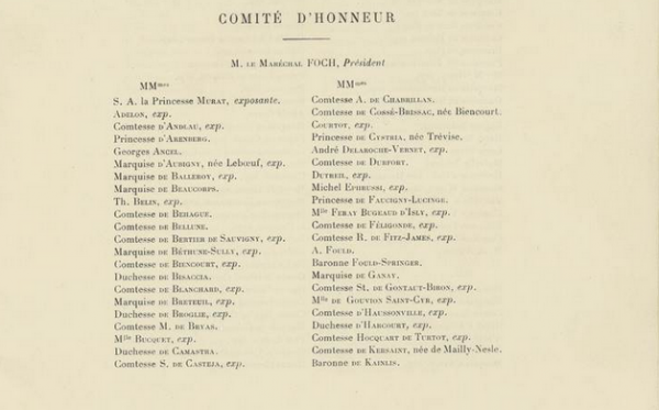 Le comité d’honneur de la Sauvegarde, placé sous la présidence du Maréchal Foch.Le 29 juin 1921, ces personnalités et experts se réunissent chez le duc de Trévise et définissent un programme d’action pour soutenir des restaurations, apporter un soutien aux musées et également pour communiquer autour de la création de la Sauvegarde. C’est le projet de l’exposition des Maréchaux, que nous avons présenté dans cet article.