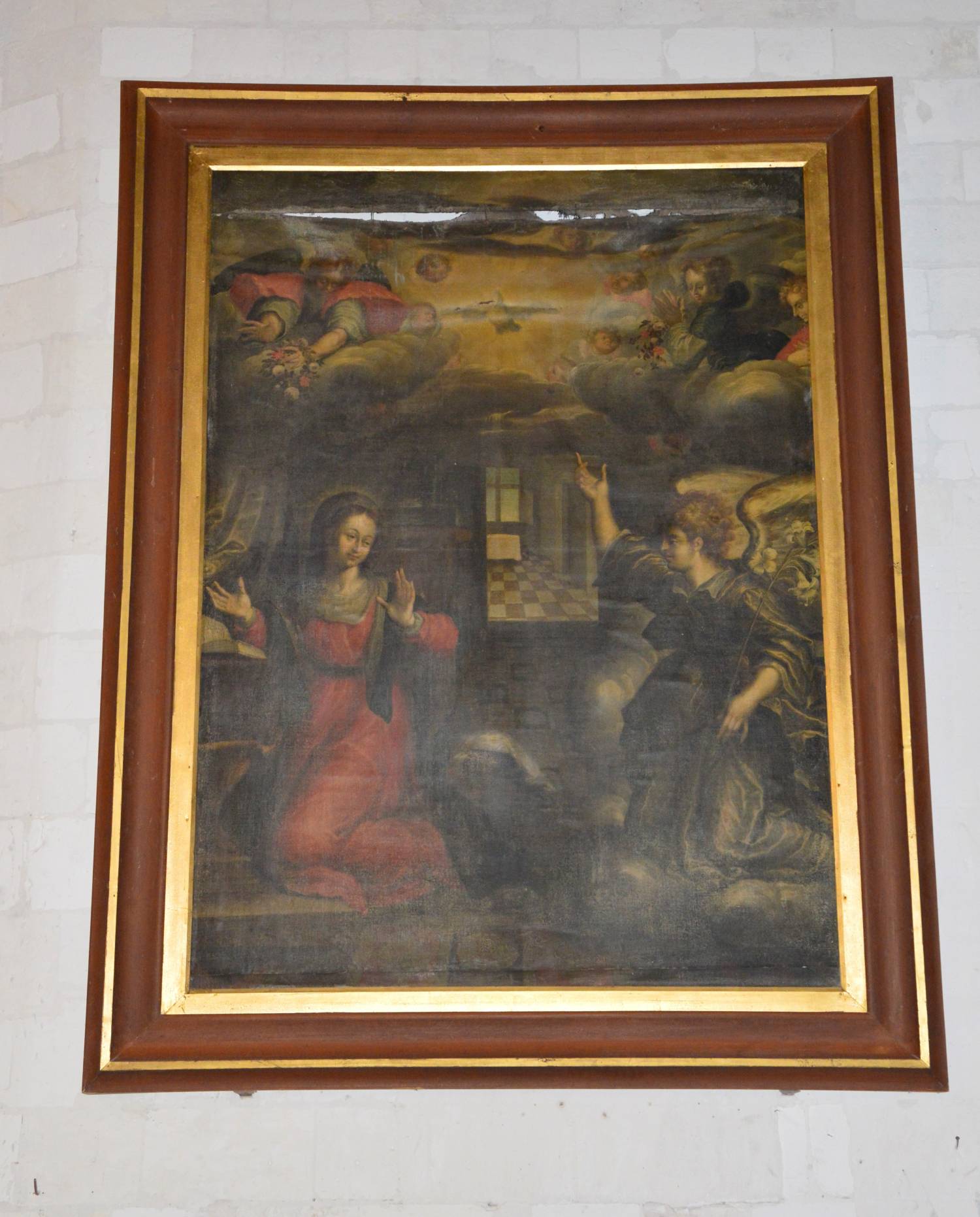 L’Annonciation – anonyme XVIIème siècleCette toile de grande taille (209x155cm) datant du XVIIème siècle est conservée dans l’église Notre-Dame à Hornoy-le-Bourg. Elle est inscrite au titre d’objet depuis 1979. Fanny Abrieu et Laura Pichard, deux étudiantes de Sciences Po Paris, ont porté ce projet pour sauvegarder cette toile en grand péril. En effet, l’œuvre est dans un état de conservation inquiétant avec un encrassement qui terni et voile les couleurs originelles et elle souffre de craquellements qui menacent sa structure. Surtout, elle comporte une grande déchirure dans sa partie supérieure qui accélère le processus de délabrement.