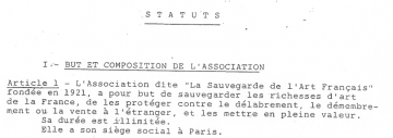 Extrait des statuts de l’association. 1922 : l’exposition des Maréchaux au profit de la Sauvegarde de l’Art Français