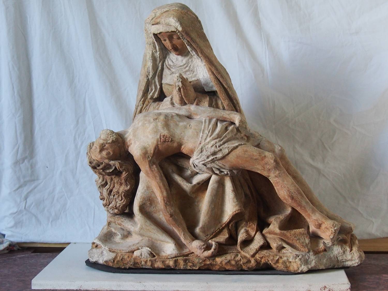 La restauration de la Vierge de Pitié, engagée en janvier dernier, a été confiée aux restauratrices Delphine Masson et Sabine Kessler, et généreusement soutenue par la Fondation d’Entreprise Michelin.