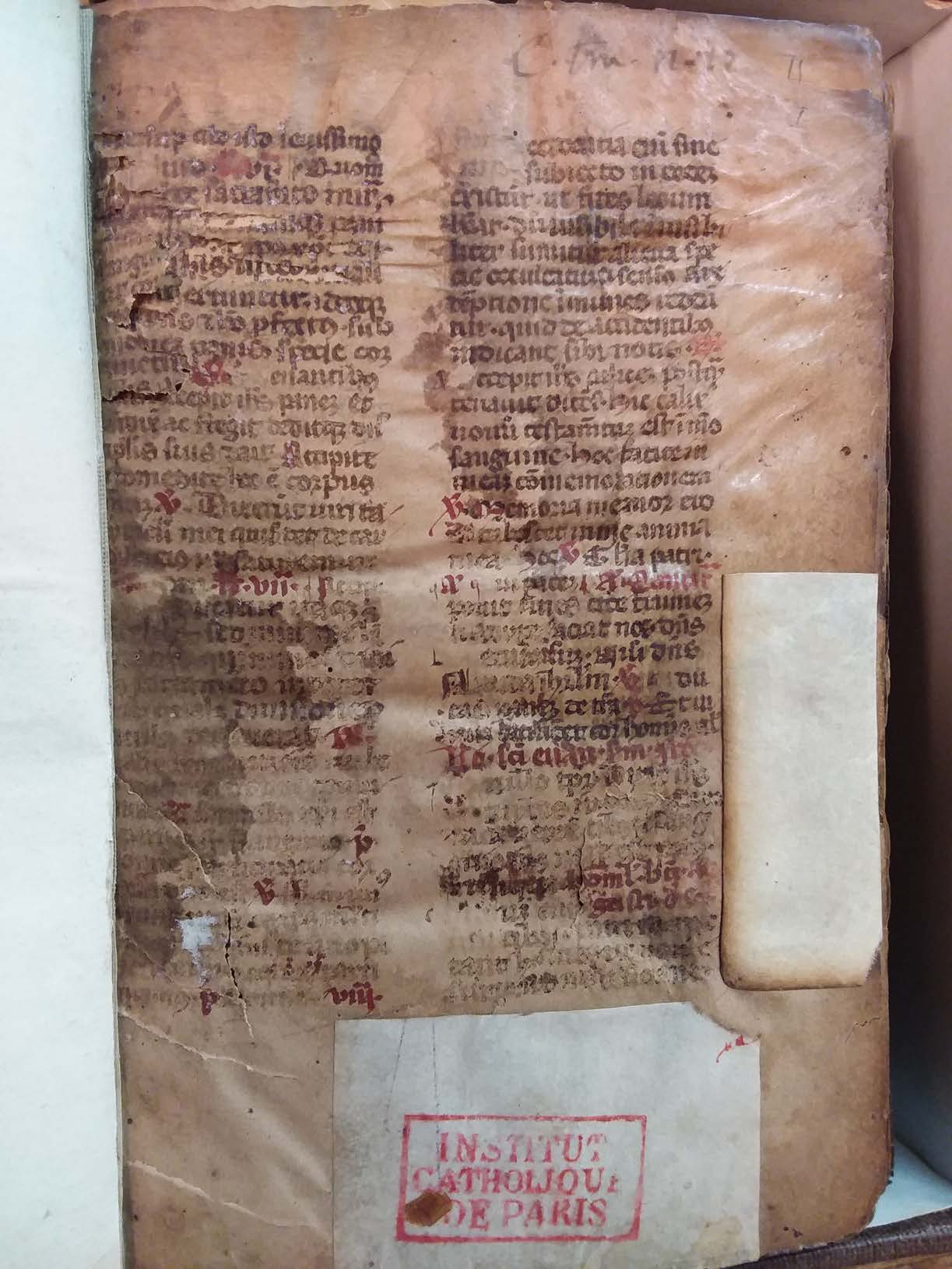 [d’après les travaux de Guy Lanoë, « Catalogue des manuscrits latins conservés à la Bibliothèque de l’Institut catholique de Paris »]