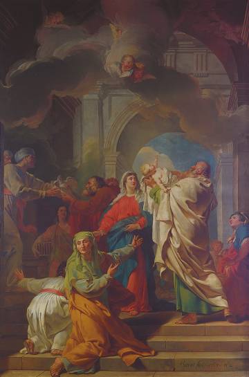 La Présentation de l’Enfant Jésus au temple, 1764, Pont-de-Vaux, église Notre-Dame-de-l’Assomption © Illustria.Après sa participation au cycle de l’histoire de Saint Louis pour la chapelle de l’École militaire en 1773, le succès des Honneurs rendus au connétable Du Guesclin par la Ville de Randon exposé au Salon de 1777 (Paris, musée du Louvre) fit de lui l’artiste le plus sollicité pour les commandes destinées à encourager la peinture d’Histoire sous le règne de Louis XVI. Ses nombreux retables peints pour les églises de province illustrent le dynamisme encore trop méconnu des commandes du clergé jusqu’à la Révolution.