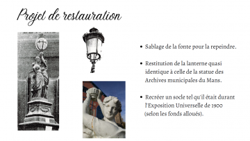 Ils ont également présenté un budget pour la restauration de l’œuvre (3 070€ pour son décapage et la peinture de la fonte) et la restitution de lanterne originale (1000€), et aussi proposer de mettre en valeur l’œuvre autour d’un mapping son & lumière (4 000€).