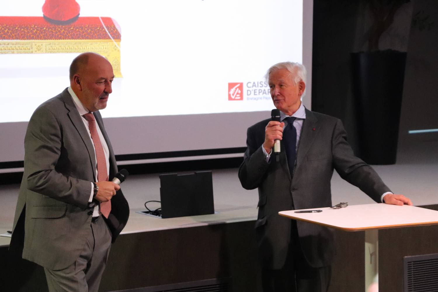 Christophe Pinault, président du Directoire de la Caisse d’Epargne Bretagne Pays de Loire, et Olivier de Rohan Chabot, président de la Sauvegarde de l’Art Français, accueillent les étudiants lors du jury final.La Caisse d’Épargne Bretagne Pays de Loire