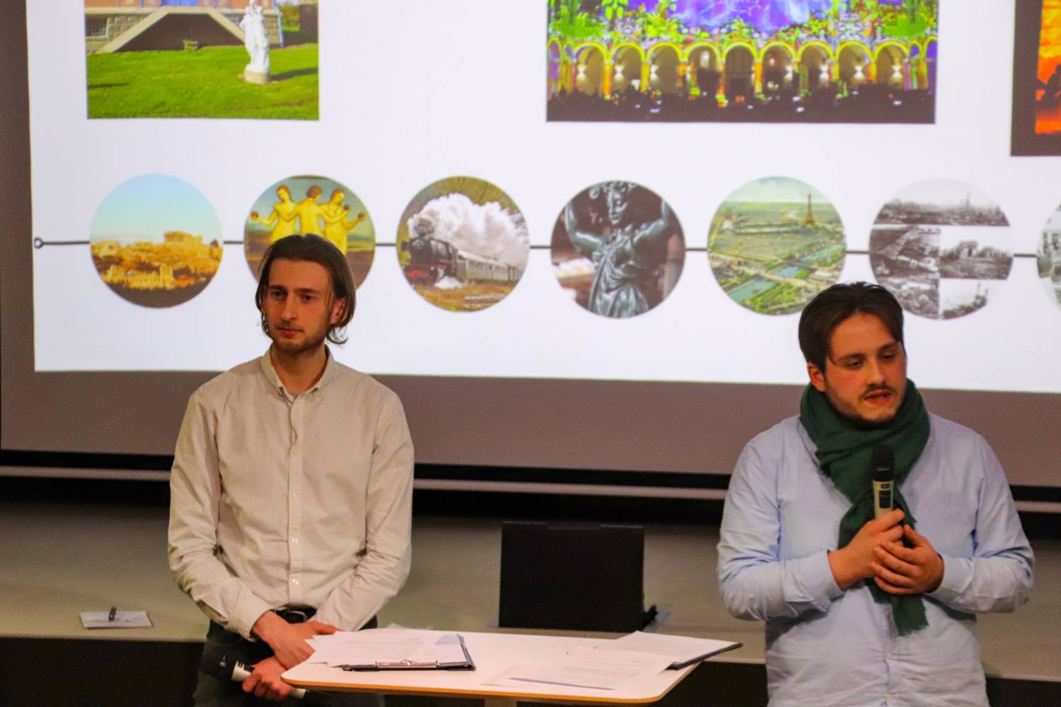 Paul Cousin et Félix Fourmy, étudiants en M2 Valorisation du Patrimoine et développement local de l’université du Mans ont présenté leur projet autour d’une œuvre originale : les grâces de la fonderie d’Antoigné à Sainte-Jamme-sur-Sarthe. Ils sont su convaincre le jury autour de l’histoire de l’œuvre et du site industriel, des expositions universelles jusqu’à sa fermeture en 1986, puis l’ouverture du centre d’interprétation par l’association des fondeurs d’Antoigné en 2006.
