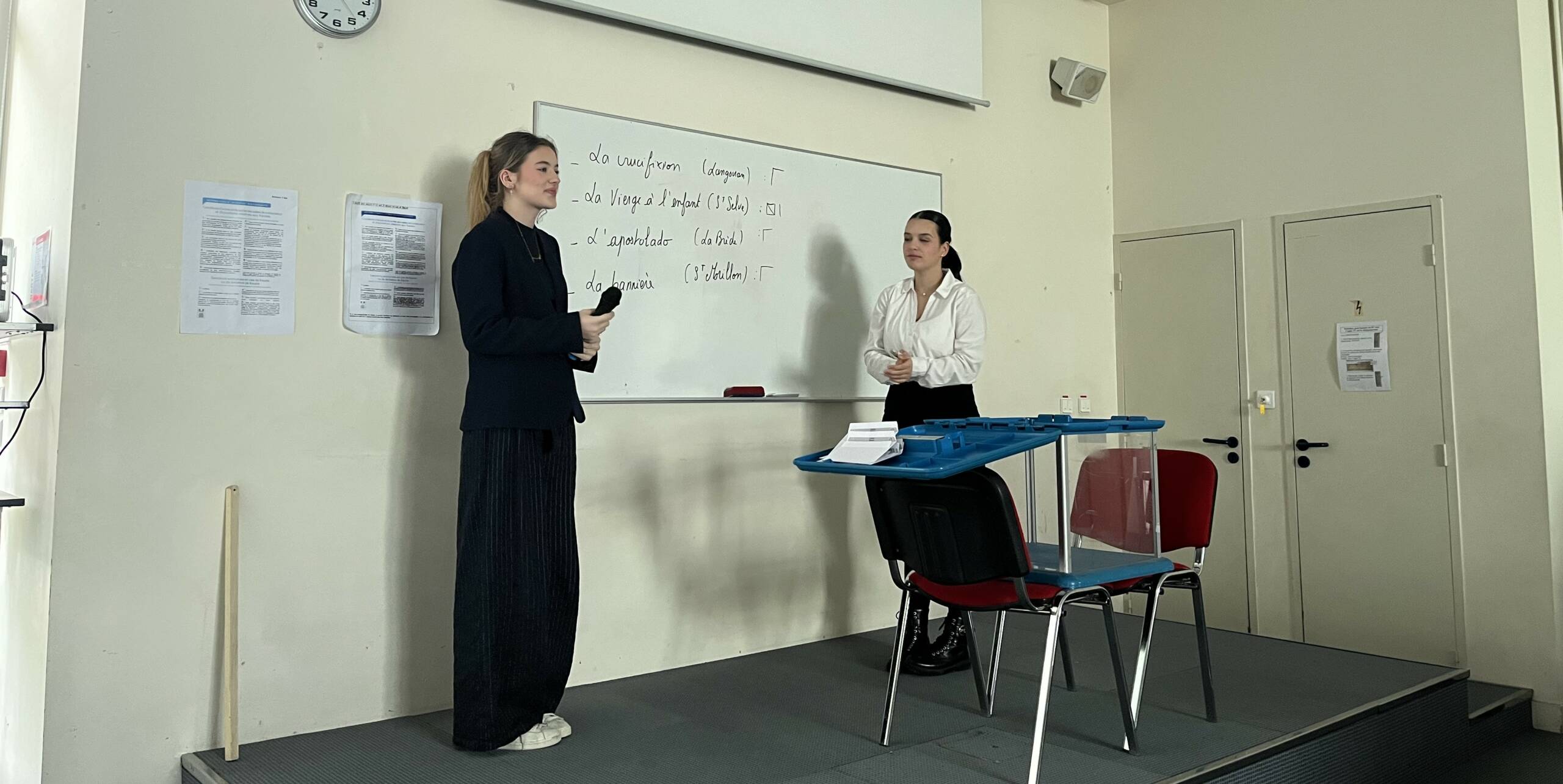 Dernier vote de mars : à Aix les Bains, 34 élèves de Seconde générale du lycée Marlioz ont su rivaliser d’inventivité dans la forme pour défendre leurs œuvres, grâce à des mises en scènes de leurs discours savamment orchestrées. Un groupe d’élèves a recréé un format d’interview radio en prenant les rôles du journaliste, du maire de la commune où se trouve leur œuvre (le vrai maire étant présent dans la salle !), et d’un historien de l’art. Un autre groupe a quant à lui joué l’histoire d’un vieil homme profondément attaché à la statue de son église qui, désespéré de la voir se dégrader, implore le maire de la restaurer… lequel refuse faute de moyens. Des démonstrations très ingénieuses qui ont su mettre en avant la complexité des enjeux de conservation-restauration du patrimoine. Au terme d’un vote au coude-à-coude entre deux statues classées MH de Vierge à l’enfant (Conjux et Chanaz, respectivement du XIVe et du XVe siècle), c’est finalement celle de Conjux qui arrive en tête avec deux voix d’avance. L’œuvre recevra un don de 10 000€ du fonds Aix-les-Bains Riviera des Alpes pour sa restauration.