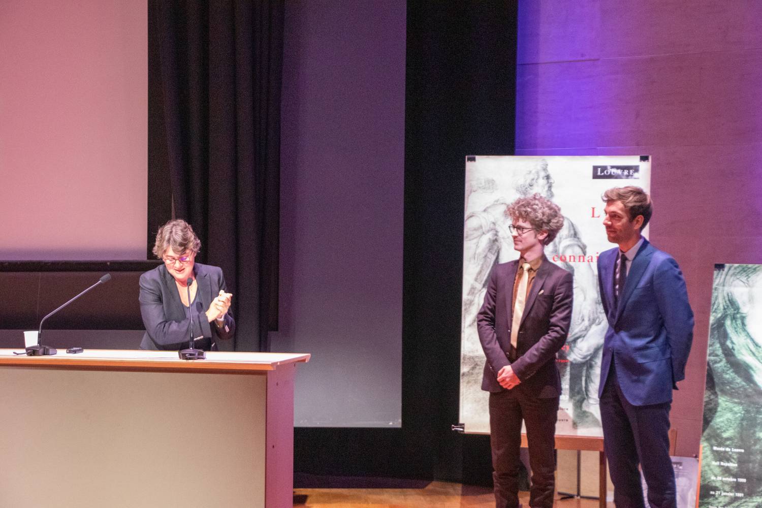 Laurence Des Cars, présidente-directrice du Louvre, remet le prix aux lauréats.Les prix ont été décerné le 22 avril en clôture de la journée organisée en hommage à Michel Laclotte à l’auditorium du Louvre. Jean-Pierre Babelon, membre de l’Institut, et Laurence des Cars, Présidente-Directrice du Musée du Louvre ont félicité les lauréats en insistant sur l’importance qu’accordait le conservateur à la transmission des savoirs.