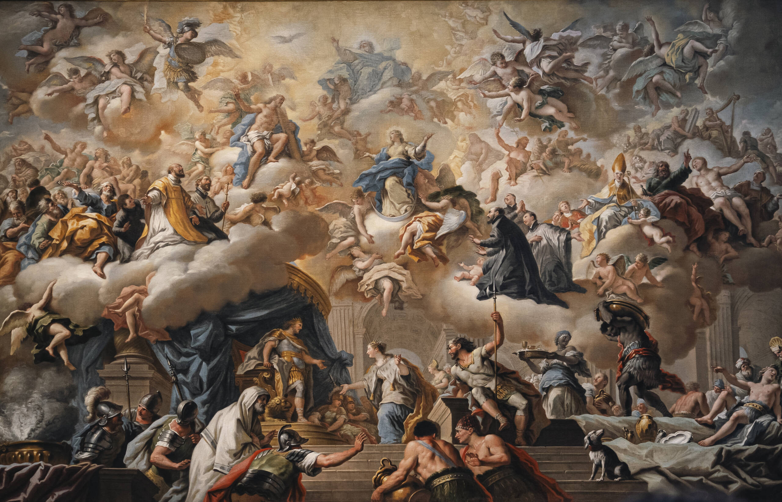 L’Église triomphante, Paolo de Matteis, c. 1715Huile sur toile, 160 x 130 cm, église Saint-François-de-Sales (75)