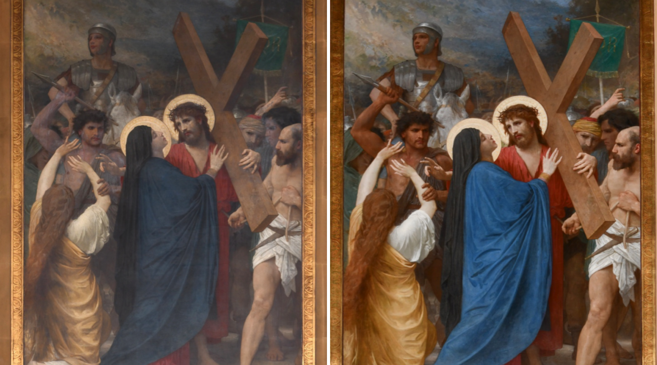 Le Christ rencontre sa mère sur le chemin du Calvaire et La Vierge, saint Jean et Madeleine au pied de la Croix, William Bouguereau, 1884-1888Huile sur toile marouflée, 354 × 199 cm, église Saint-Vincent-de-Paul (75)
