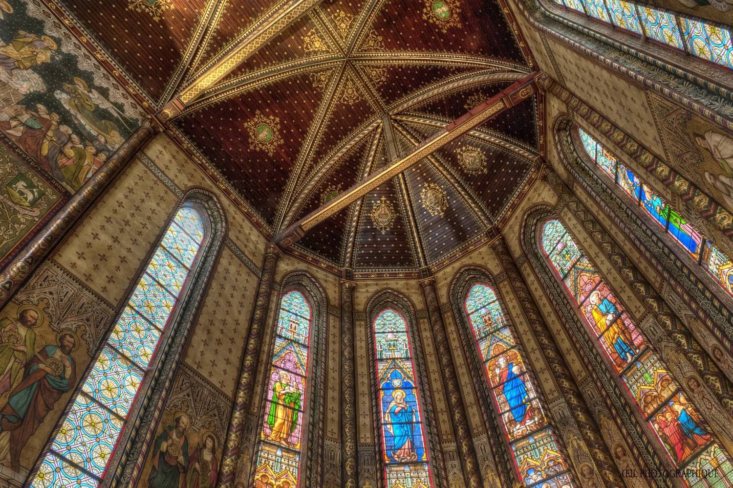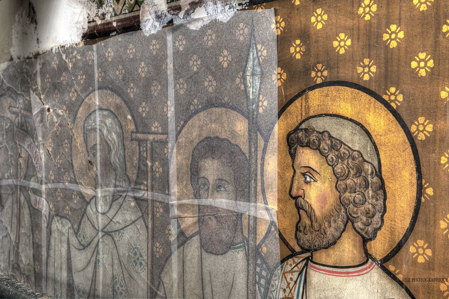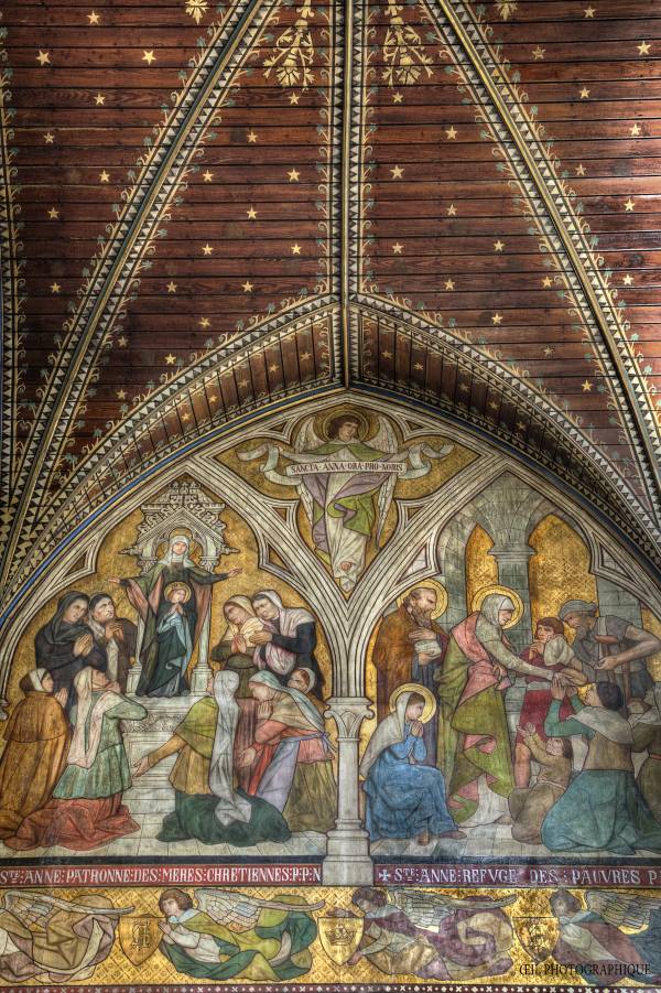 Les peintures en restauration © L’œil / Michel BoucherieLa crise industrielle qui frappe Roubaix au XXe siècle n’épargne pas le quartier de l’Alma, et l’église Saint-Joseph est peu à peu délaissée. Au point que, faute d’entretien, l’édifice est promis à la démolition à la fin des années 80. Et pourtant, Bruno Foucart, inspecteur général des Monuments Historiques, célèbre pour avoir réhabiliter l’art du XIXe siècle en France et enfant du pays, obtient en 1993 le classement de l’église, fait tout à fait exceptionnel à cette époque pour un bâtiment néo-gothique.