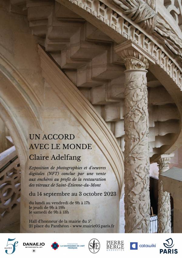 En janvier 2022, Danae.io et la Sauvegarde de l’Art Français ont initié un projet commun avec l’artiste Claire Adelfang visant à permettre la restauration d’un patrimoine parisien remarquable : les vitraux de la galerie du cloître du charnier de l’église Saint-Etienne-du-Mont (Ve arrondissement de Paris). Claire Adelfang, artiste photographe, a ainsi réalisé une série photographique de cette église si chère au cœur des parisiens, saisissant la beauté gothique d’une des plus belles églises de la capitale. En partenariat avec la mairie de Paris, les photographies grand format et les NFT issus du travail de l’artiste sont à découvrir dans les salons de la mairie du Ve arrondissement jusqu’au 3 octobre prochain.