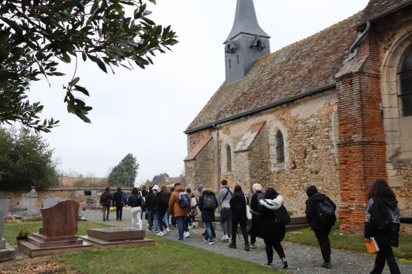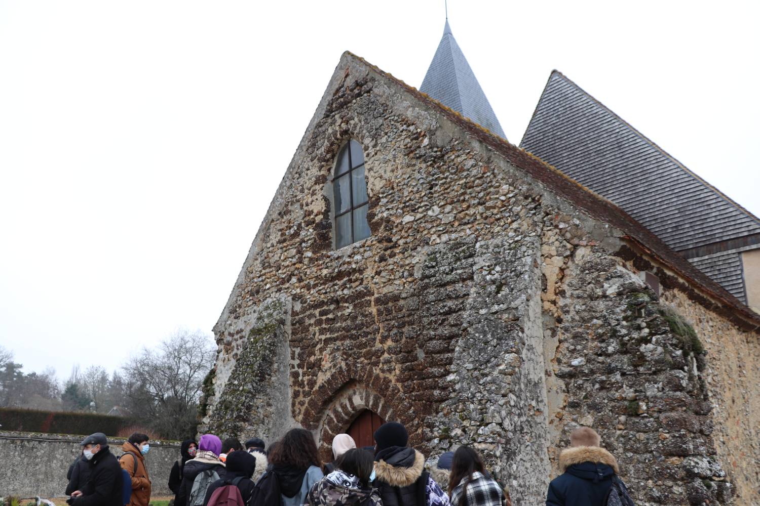 Premier arrêt de la journée : l’église Saint-Pierre de Vert-en-Drouais, dont la fondation remonte au XIIe siècle. Les lycéens sont accueillis par la présidente de l’association de sauvegarde de l’église qui leur dit que la commune d’un millier d’habitant est très impliquée dans sa restauration et qu’elle est très heureuse de les accueillir.