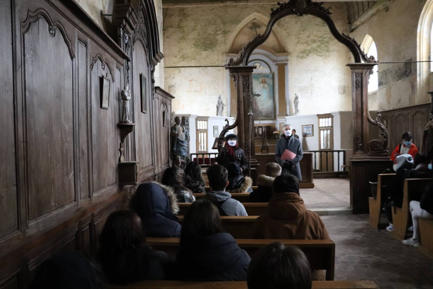 Le père François Muchery, affectataire de l’église et membre de la commission diocésaine pour l’art sacré, prend la parole afin d’expliquer aux lycéens son action en faveur du patrimoine et sa collaboration avec les services de la DRAC. Enfin, les lycéens ont la surprise et la joie de se voir offrir par la mairie un goûter très apprécié !