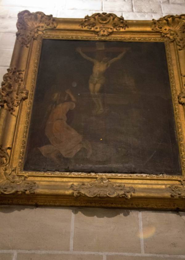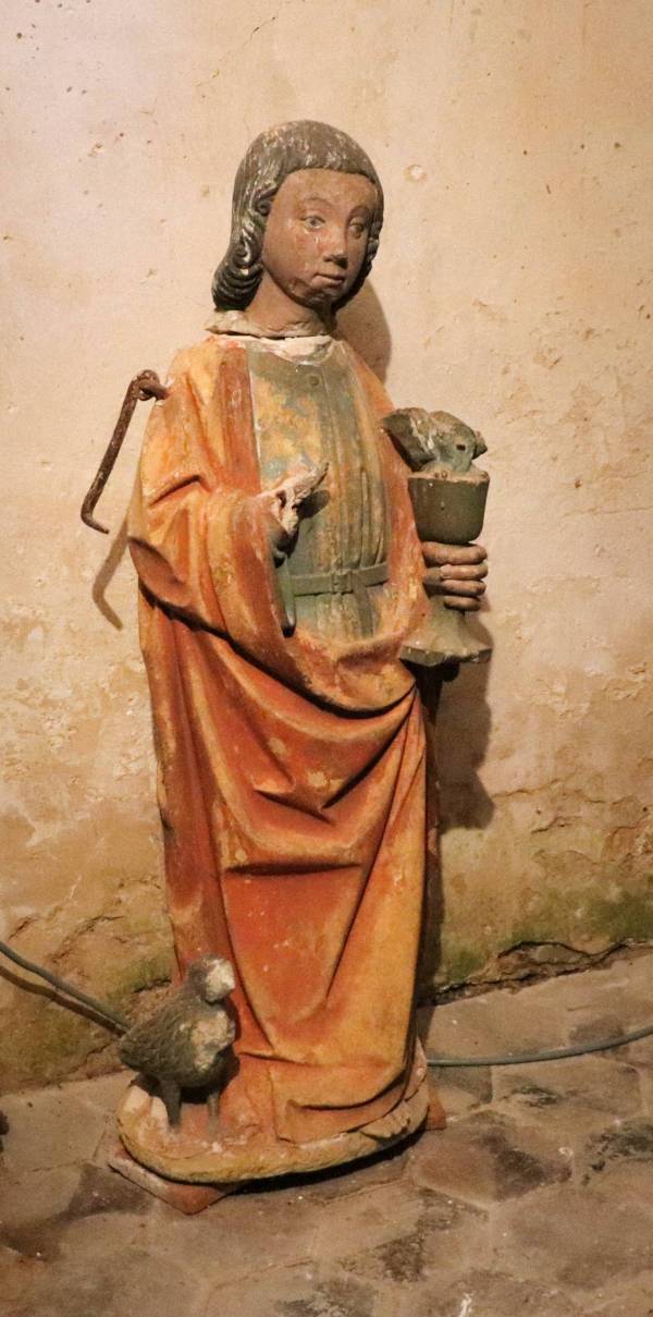 Elle est conservée dans la sacristie. L’endroit est exigu et les élèves s’y rendent en petit groupe pour constater la facture remarquable de cette oeuvre polychrome du XVIe siècle. Il s’agit de faire retrouver à saint Jean sa tête, qui a été conservée, à défaut de pouvoir lui faire retrouver sa main droite qui a disparu.