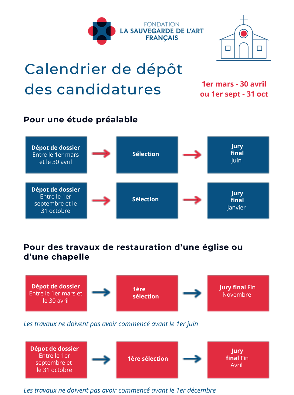 Partagez cette pageFacebookTwitterGoogle+Par mail AccueilDemander une aide Demander une aide Une attention particulière sera apportée au soin avec lequel sont constitués les dossiers de demande d'aide. Si vous souhaitez obtenir un conseil technique de la part de nos architectes avant de choisir vos entreprises et en sus d'un don éventuel, merci de nous l'indiquer par le mail suivant : dossiers@sauvegardeartfrancais.fr (en précisant le nom de l'édifice, le nom de la commune et le département). Votre demande concerne Une étude préalable Une restauration d'édifice Une restauration d'objet d'art Je teste l’éligibilité de mon dossier La plus grande part des aides accordées provient du legs Maillé. Les conditions testamentaires exigent que les édifices soient : des églises ou chapelles, antérieurs à 1800, non classés au titre des Monuments historiques, mais de préférence inscrits Les travaux doivent concerner le gros œuvre : structure de charpente, couverture et maçonnerie à l’exclusion des travaux de peinture, de menuiserie, d’enduits intérieurs, d’électricité ou de chauffage, de vitraux… Je teste l’éligibilité de mon dossier La plus grande part des aides accordées provient du legs Maillé. Les conditions testamentaires exigent que les édifices soient : des églises ou chapelles, antérieurs à 1800, non classés au titre des Monuments historiques, mais de préférence inscrits. Les travaux doivent concerner le gros œuvre : structure de charpente, couverture et maçonnerie à l’exclusion des travaux de peinture, de menuiserie, d’enduits intérieurs, d’électricité ou de chauffage, de vitraux… La Sauvegarde de l’Art Français accorde une grande importance à la qualité des travaux de restauration des églises et chapelles rurales. À l’issue de chacune des sessions de dépôt de dossiers, ceux-ci subiront une sélection par un premier jury avant d’être présenté au Comité final. Les dossiers sélectionnés recevront une aide de 5 000 € en moyenne. Édifice Date de constructionAvant 1800Après 1800Je ne sais pasNatureÉgliseChapelleAbbatialeCollégialeBasiliqueChapelle de châteauChapelle de prieuréChapelle de couventTempleAutre édifice religieuxÉdifice civilType de travauxRestauration de la charpente, de la couverture ou de la maçonnerie, ou assainissementAménagement et ou embellissement intérieurRestauration du mobilier, des vitraux…Protectionnon protégéInscrit à la liste supplémentaire des monuments historiquesClassé parmi les monuments historiquesMobilier classé Monument historiqueAide / détailsSi vous ne connaissez pas la protection de l’édifice, suivez ce lien.Inscrit leInscrit leClassé leClassé le Vous êtes éligible Les dossiers que nous recevons sont soumis à un comité composé de spécialistes du patrimoine, chargés de conseiller le Conseil d’administration dans le choix des aides à apporter. Nous aidons à sauver en priorité les édifices qui présentent : des désordres de stabilité (maçonnerie ou charpente) des défauts d’étanchéité, susceptibles de nuire à la conservation du monument ou à la préservation des objets d’art qu’il abrite. Les opérations de simple mise en valeur, pour judicieuses qu’elles soient, ne pourront donc être prises en compte que très exceptionnellement. Nous sommes particulièrement attentifs à la préservation maximale du caractère authentique de ces édifices. Ils sont en effet, dans tous les cas, le résultat de plusieurs siècles de transformations. La Sauvegarde favorise les projets qui sont respectueux de cette histoire et ne soutient pas les travaux de restitution à un état antérieur. Documents à fournir une lettre motivant votre demande l’autorisation de publication de photos un historique de l’édifice un plan au sol un résumé des travaux projetés avec leur localisation sommaire sur plan(s) et l’indication du nombre de tranches prévues ou l’étude préalable (si vous faites appel à un architecte) ainsi que le montant global estimé de l’opération la délibération du Conseil Municipal décidant les travaux ou autorisant une association à prendre en charge les travaux (pour les édifices publics) un maximum de belles photos JPEG (intérieur, extérieur, mobilier, parties à restaurer) pour que nous ayons une bonne vision d’ensemble de votre église (pour information, lors de la commission, votre édifice sera d’abord présenté sous l’angle historique et esthétique avant d’expliquer la nécessité des travaux que vous envisagez) la délibération approuvant l’appel d’offres (pour les édifices publics) les devis détaillés et signés par les entreprises chargées des travaux, si vous l’avez, l’accord écrit de l’Architecte des Bâtiments de France sur ces devis (même si l’édifice n’est pas protégé au titre des Monuments historiques) les notifications d’attribution de subventions : montant des subventions de l’État, de la Région, du Département et des aides provenant éventuellement d’autres sources. Vous êtes éligible Les dossiers que nous recevons sont soumis à un comité composé de spécialistes du patrimoine, chargés de conseiller le Conseil d’administration dans le choix des aides à apporter. Nous aidons à sauver en priorité les édifices qui présentent : des désordres de stabilité (maçonnerie ou charpente) des défauts d’étanchéité, susceptibles de nuire à la conservation du monument ou à la préservation des objets d’art qu’il abrite. Les opérations de simple mise en valeur, pour judicieuses qu’elles soient, ne pourront donc être prises en compte que très exceptionnellement. Nous sommes particulièrement attentifs à la préservation maximale du caractère authentique de ces édifices. Ils sont en effet, dans tous les cas, le résultat de plusieurs siècles de transformations. La Sauvegarde favorise les projets qui sont respectueux de cette histoi