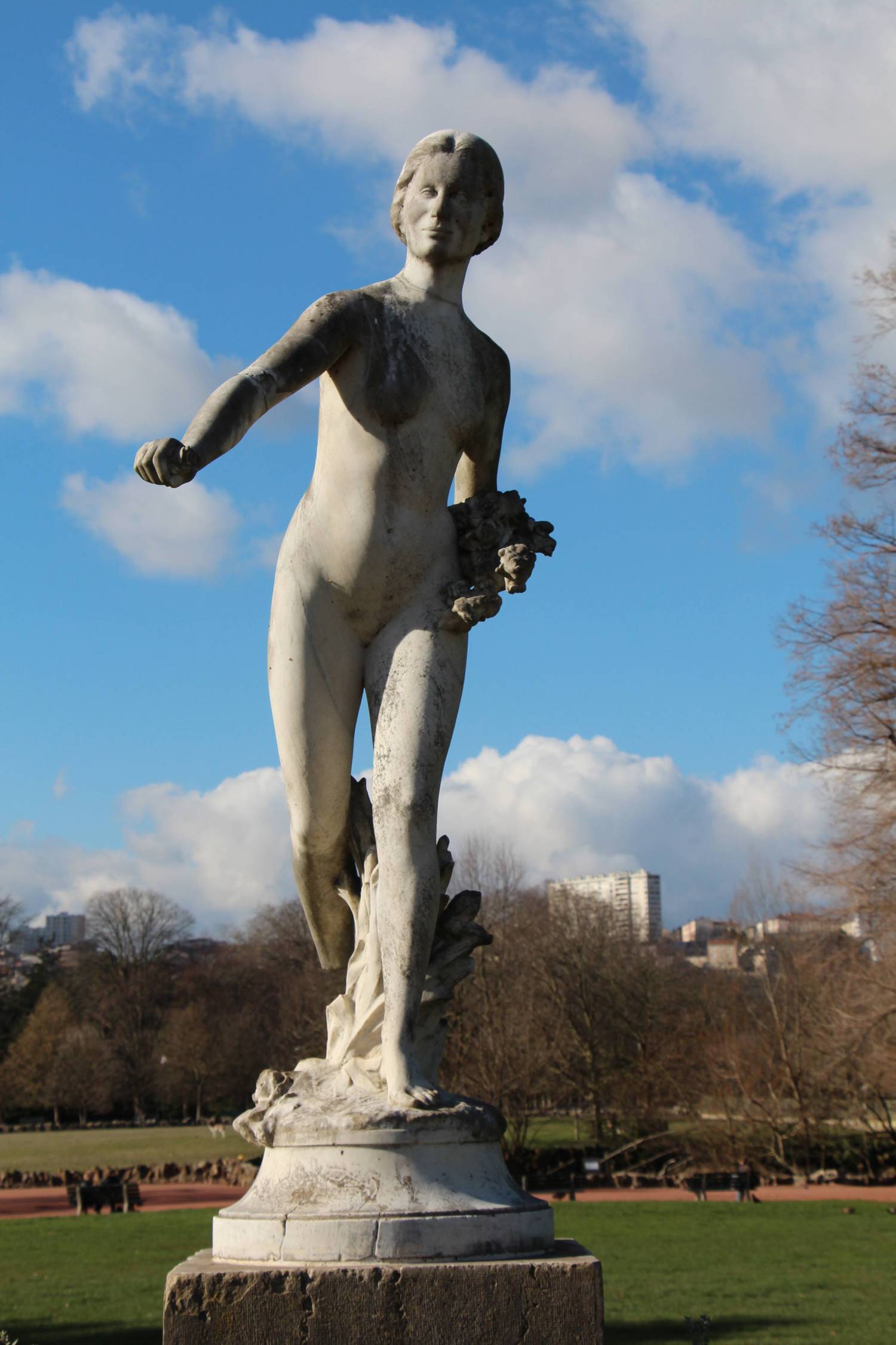 Trônant aujourd’hui, sereine, au cœur du parc de la Tête-d’Or, lieu emblématique de la ville lyonnaise, la statue séculaire « Floréal » a connu quelques tumultes au cours de sa vie. Cette statue d’un style classique en marbre, à l’origine d’une blancheur immaculée, représente une jeune fille nue que l’on imagine courir dans les prés et qui, d’une main tendue offre une rose au promeneur et tient dans l’autre un bouquet de fleurs.
