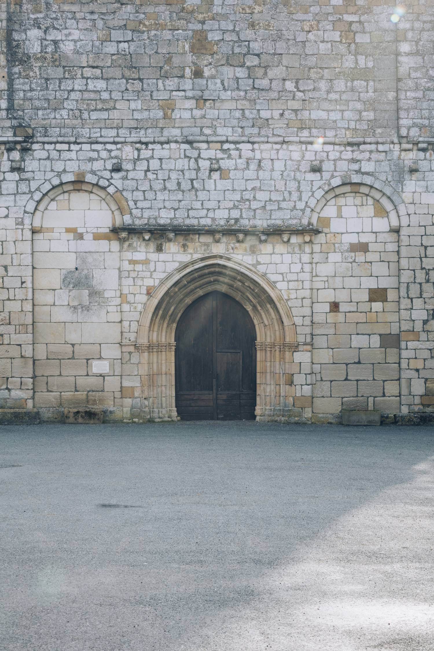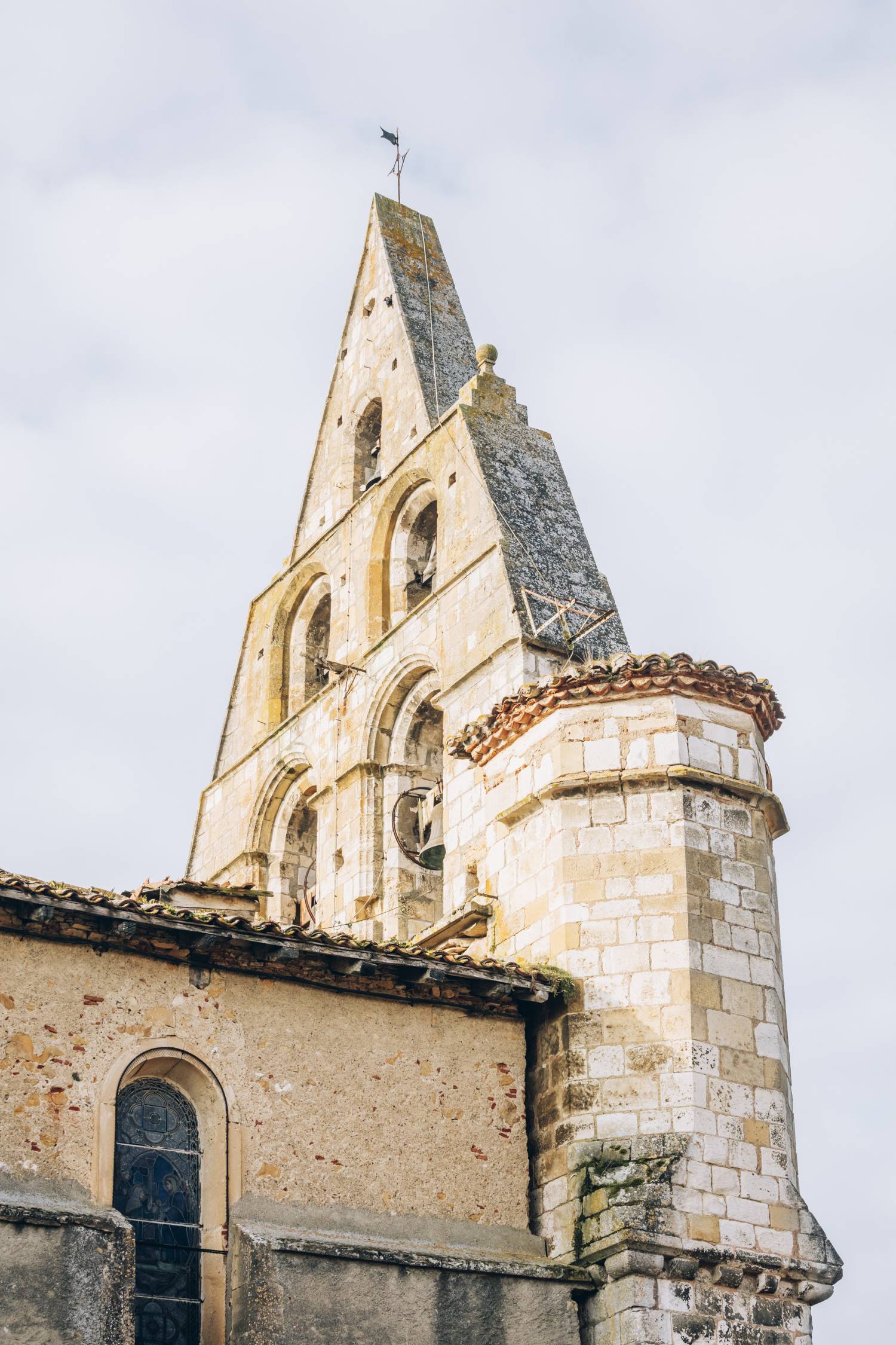 Entièrement bâtie en pierre de taille, sa sobre façade comporte un beau portail aux arcatures en tiers point. La façade occidentale est surmontée d’un clocher-peigne du XIVe / XVe siècle.
