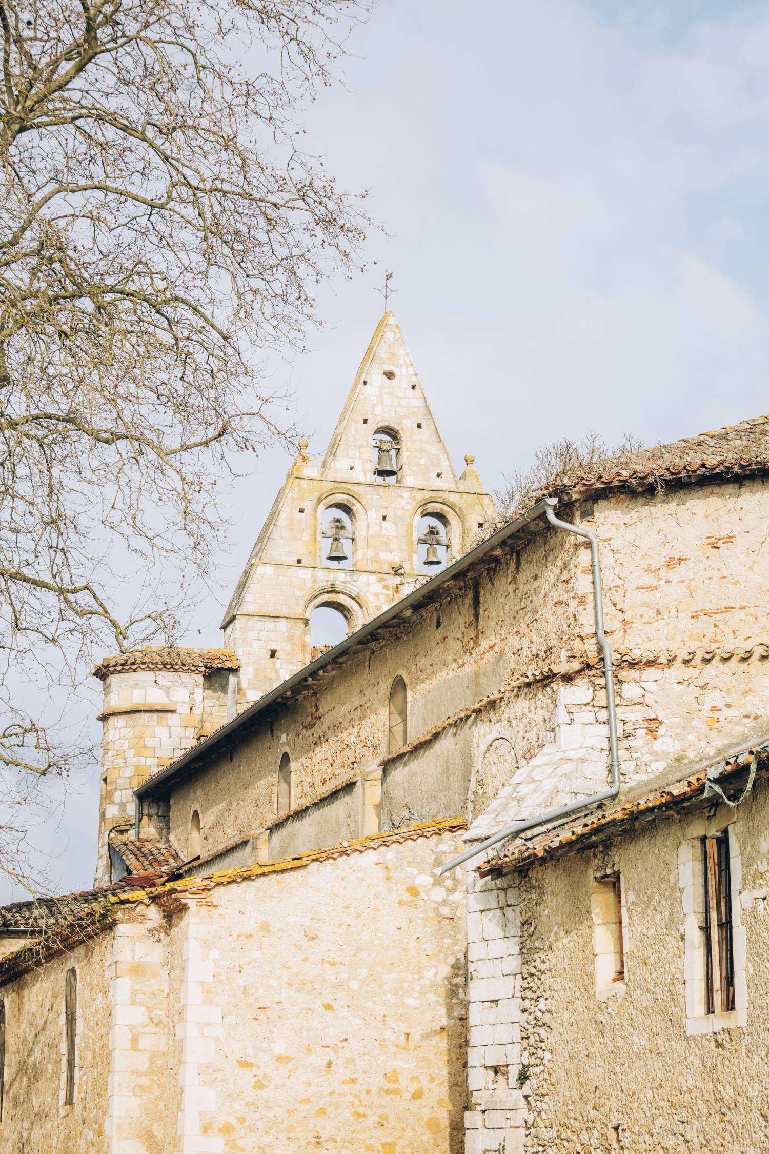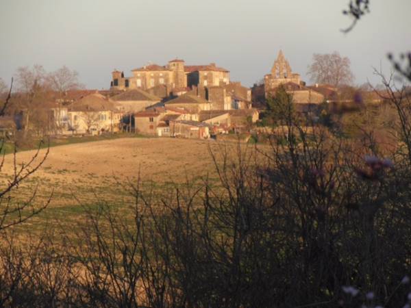 Puis au XIIIe s., le village fut fortifié en bastide. Subsistent de cette époque deux belles portes de ville dont celle du nord – voûtée, comme on en trouve de nombreuses dans le sud ouest – ainsi qu’un réseau de rues orthogonales, donnant sur la très grande et longue place centrale. Côté ouest s’élève la haute façade occidentale du clocher de l’Église, avec en vis à vis le monument aux morts et un obélisque au centre.