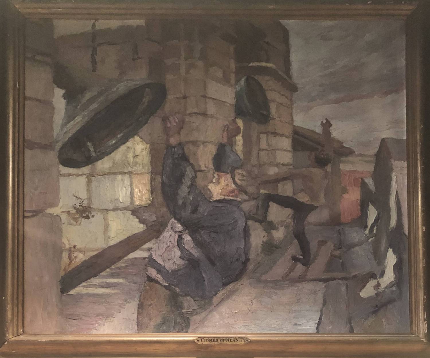 Tableau du duc de Trévise représentant les villageois sonnant les cloches de l’église d’Alan pour mettre en fuite le marchand venu démanteler la vache sculptée du Palais Épiscopal.