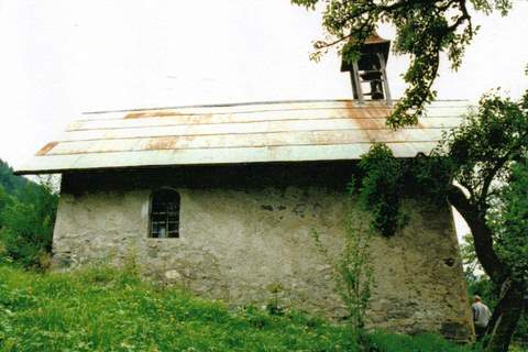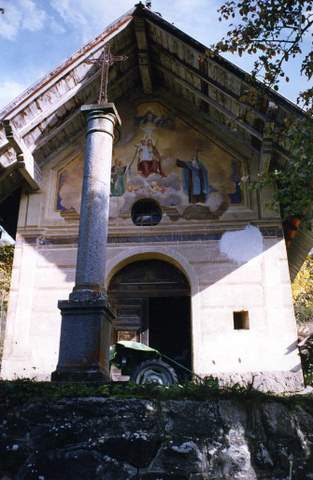 La chapelle Notre-Dame-de-Grâce est située au hameau du Collet-d’en-Bas, sur le chemin autrefois très fréquenté qui mène aux Arves et à l’Oisans. Sa construction fut décidée en 1682. Simple rectangle de 8 m de long, elle est composée de deux travées carrées séparées par un doubleau et voûtées sur croisées d’ogives, la première simple, la seconde avec liernes et tiercerons. La toiture à double pente est surmontée par un élégant clocheton ; elle déborde largement en particulier vers l’ouest pour protéger la façade peinte sur deux registres : en bas la porte en plein cintre s’ouvre dans un décor architecturé en trompe-l’œil, bandes horizontales de tables, pilastres à chapiteaux, architrave sous corniche portant l’invocation « Mater divinae gratiae ora pro nobis » ; au-dessus dans le triangle du pignon, une vision céleste de la Vierge en majesté présentant l’Enfant Jésus et recevant, comme son fils, les rayons de la grâce de Dieu le Père à travers la colombe de l’Esprit Saint. De part et d’autre, saint Joseph offre un lys à l’Enfant et saint Antoine Ermite désigne le tout à la dévotion des fidèles. Cette composition a été réalisée entre 1920 et 1930, mais est tout à fait dans l’esprit des peintures extérieures de ces anciennes chapelles de montagne.