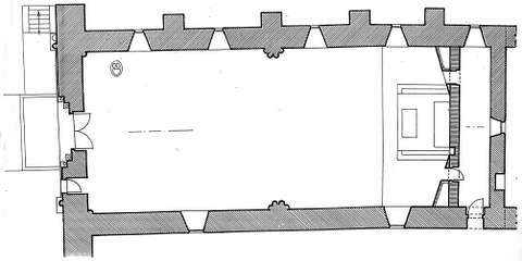 À l’intérieur, la nef est couverte d’une simple charpente. Dans chacun des angles s’élève une colonne, et à la mi-temps de la nef, au nord et au sud, trois colonnes en faisceau, ce qui a fait écrire que l’église avait été couverte d’une voûte en pierre, hypothèse cependant improbable étant données la largeur de l’édifice et la faiblesse des points d’appui. Le chœur, dont nous ne savons rien, était peut-être voûté. L’ensemble, d’une extrême simplicité, est extrêmement émouvant.