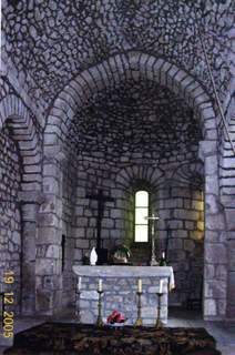 Perchée sur une rive abrupte de la Creuse à l’orée d’un pittoresque hameau, à 5 km d’Aubusson, cette église du XIIes. dépendait de la puissante abbaye limousine de Chambon-sur-Voueyze. Elle se compose d’une abside pentagonale au-dehors, semi-circulaire à l’intérieur, sans décor, éclairée par une meurtrière intérieurement ébrasée dans l’axe et une autre au midi, et voûtée d’un cul-de-four de moellons. Un doubleau en arc brisé sur dosserets la sépare d’une travée rectiligne de chœur un peu plus large, dont le berceau de moellons repose sur deux gouttereaux également en moellons, intérieurement renforcés de deux arcs en plein cintre. Ceux-ci reposent sur trois colonnes adossées à chapiteaux nus, sauf un au nord, qui porte un vague décor végétal. Les dosserets qui marquent l’entrée du chœur portent un second doubleau qui repose sur trois assises en encorbellement. Une piscine en arc brisé est présente dans le sanctuaire.