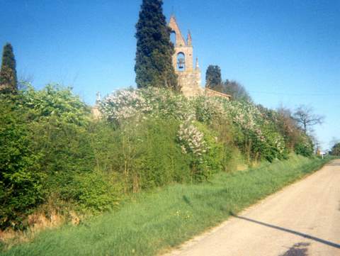 Église Saint-Eugène. Ce modeste édifice est situé sur une éminence dominant un vaste paysage. Le clocher qui la domine est la partie la plus monumentale et la plus sophistiquée de la construction : c’est un clocher-mur comme on en rencontre fréquemment dans le Midi toulousain, composé de deux niveaux percés de baies et cantonnés de pyramidions, qui s’achève par un fronton aigu. Les murs extérieurs de la chapelle, épaulés de contreforts pleins, sont construits en appareillage irrégulier à base de grès tendre, caractéristique de cette partie du Tarn.