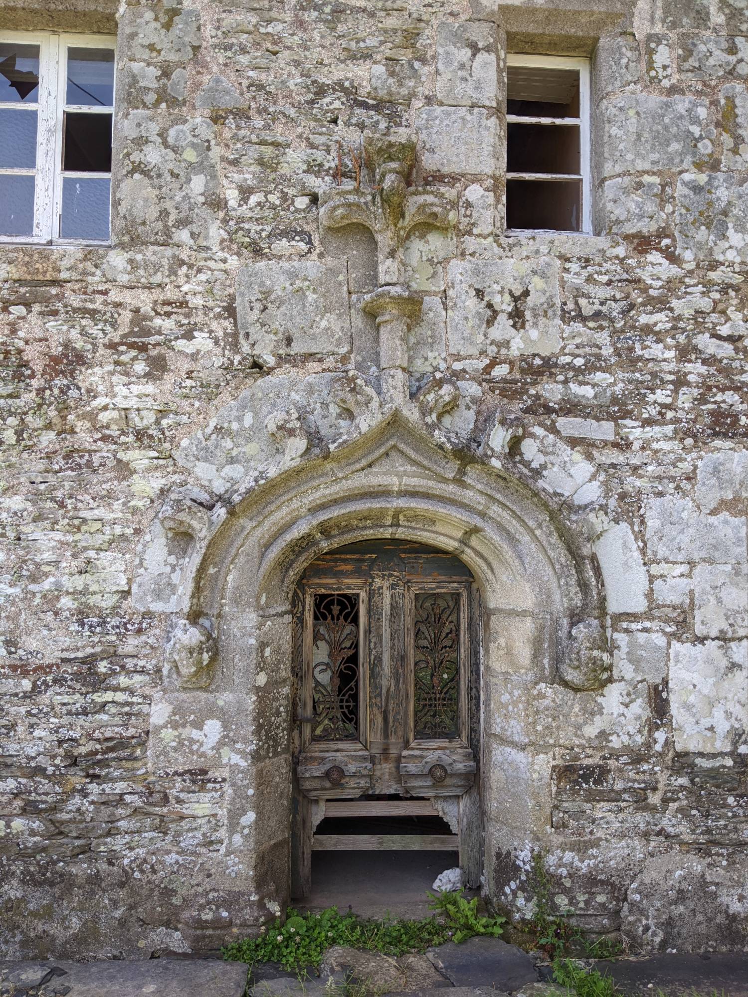 Le bâtiment le plus ancien présente une architecture très qualitative, notamment sur sa façade principale. La porte d’entrée en arc en anse de panier, avec son décor d’inspiration gothique : voussure, rampants en accolade moulurés à crochets, visages sculptés, est remarquable.