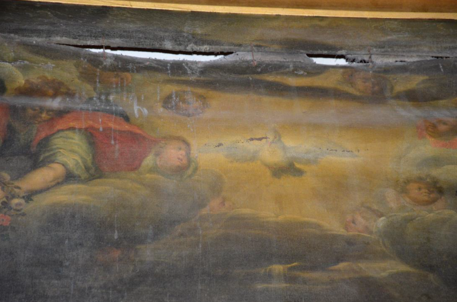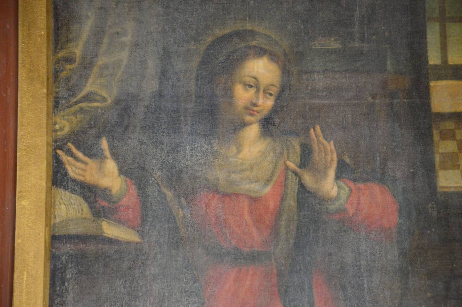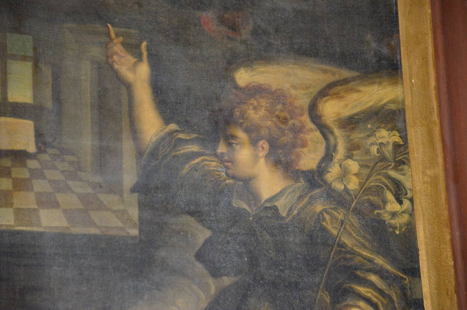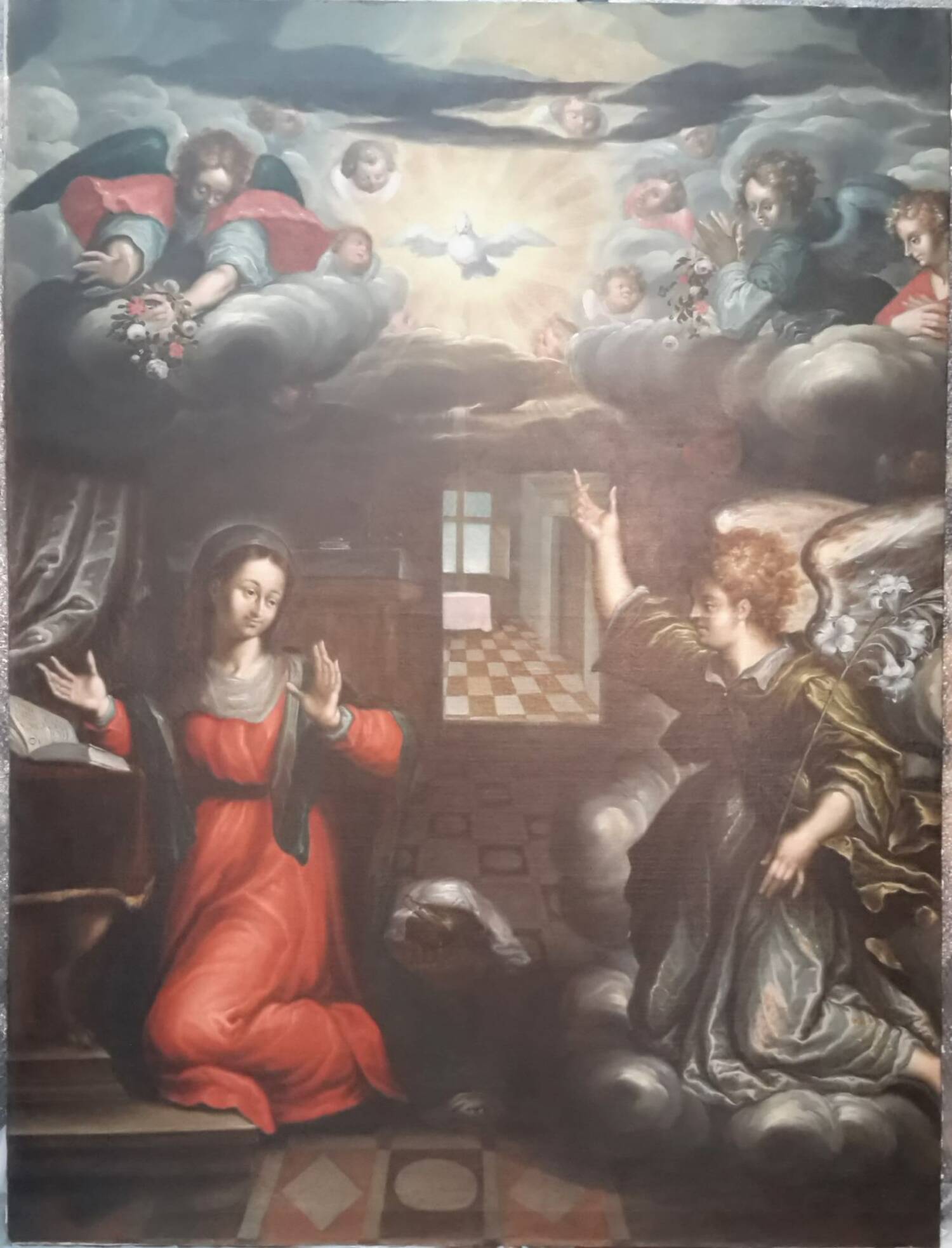 En dépit de sa qualité, l’Annonciation avait été extrêmement mal conservée. Le support de l’œuvre, la toile, était très abîmé. Une grande déchirure lacérait le haut du tableau et de nombreux autres accidents ponctuaient l’œuvre. Cette déformation du support avait entraîné des dégradations dans la couche peinte de l’œuvre, notamment la chute de certaines zones de peinture. Encrassée et craquelée, la détérioration du tableau ne permettait plus d’en apprécier toute la qualité. La restauration s’imposait afin de redonner à l’œuvre un support stable, de remettre en valeur la richesse de ses couleurs et de pouvoir l’admirer dans un aspect plus proche de celui original. Désormais restaurée et replacée dans l’église, cette œuvre pourra enfin témoigner du patrimoine culturel de sa commune avec éclat.