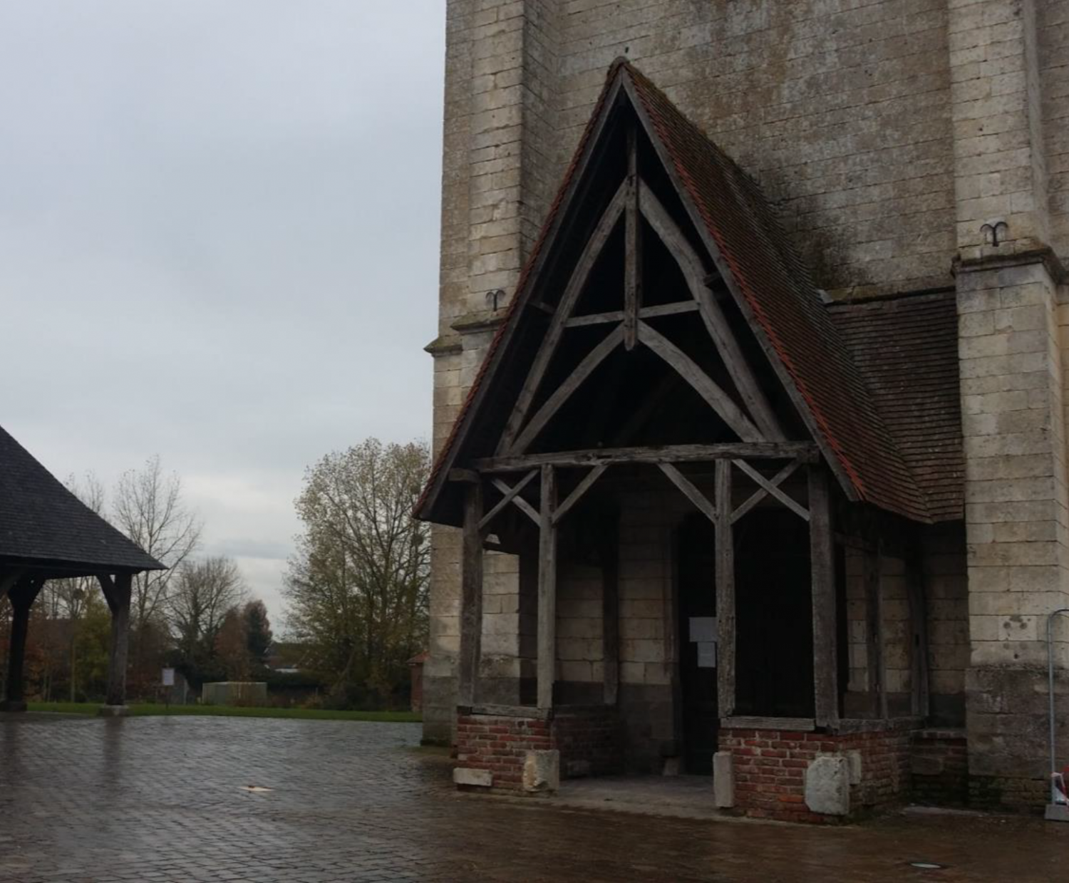 L’Annonciation de l’église d’Hornoy-le-Bourg Il représente l’Annonciation, épisode fondateur pour la religion chrétienne. L’ange Gabriel apprend à la Vierge Marie qu’elle porte le Christ en son sein pour qu’il s’incarne sur Terre. Marie est ici représentée vêtue d’une robe rouge et d’un manteau bleu. Elle est agenouillée face à un prie-Dieu, dans sa chambre. Le livre dans lequel elle était plongée est encore ouvert, mais elle s’en détourne d’un mouvement brusque pour faire face à l’arrivée de l’ange. L’ange Gabriel est représenté agenouillé également, sur des nuées. Il indique le ciel de sa main gauche et tient un lys dans la main droite, symbole de la virginité et de la pureté de Marie. La partie supérieure est occupée par les nuées célestes, qui s’écartent dans une lumière dorée pour faire place à la colombe du Saint Esprit. Un ange tient une couronne de fleur dans les mains, prête à tomber sur la tête de Marie.