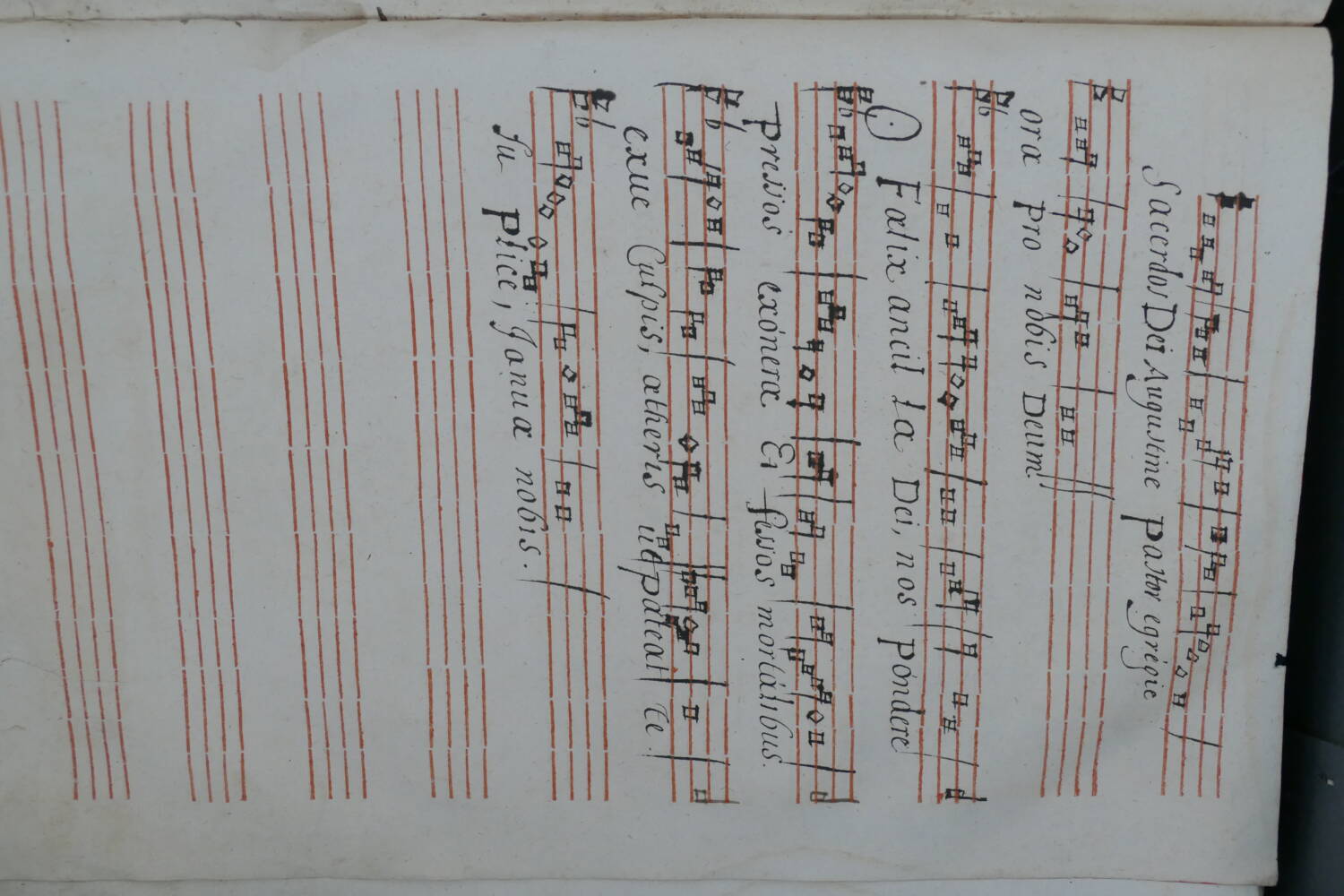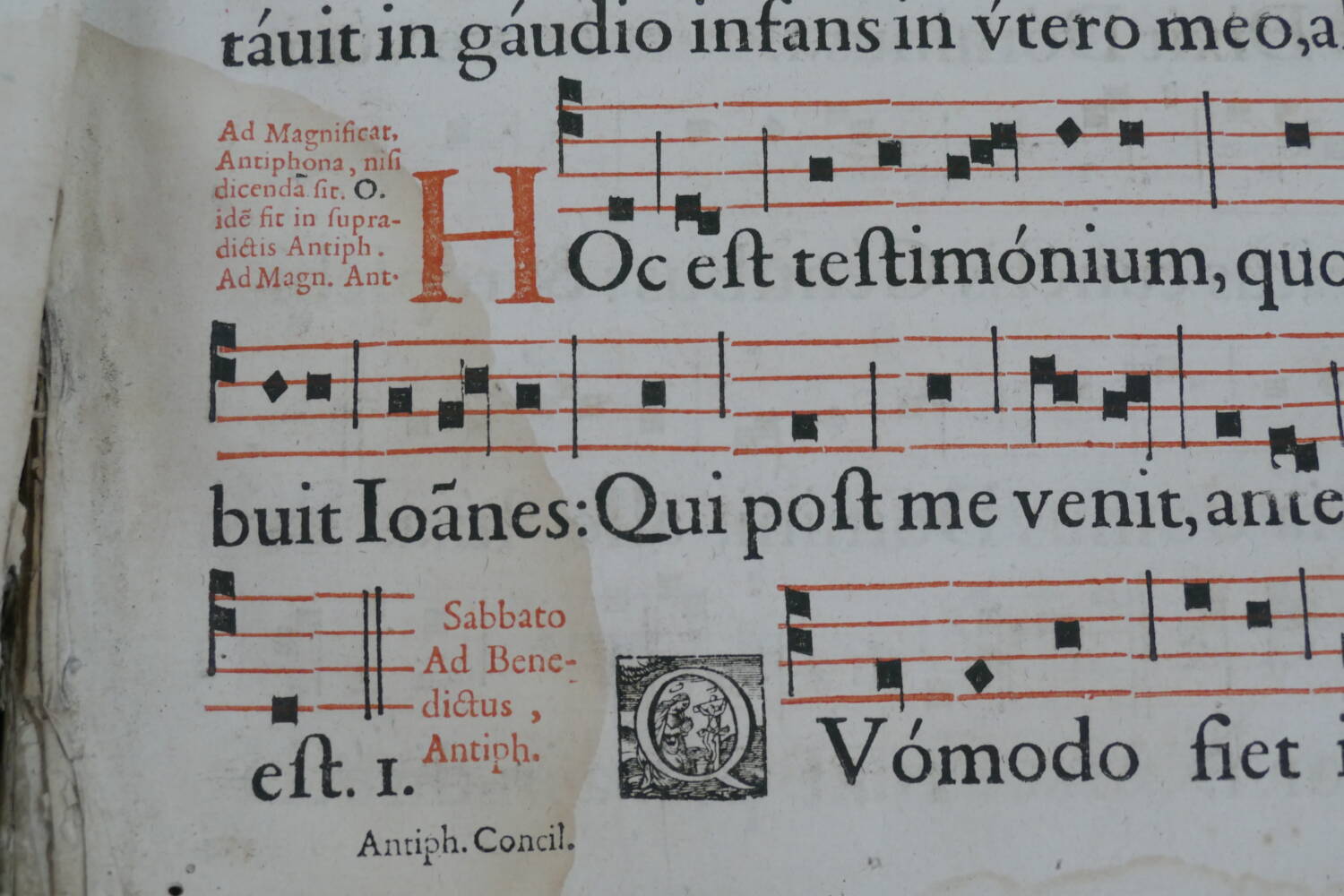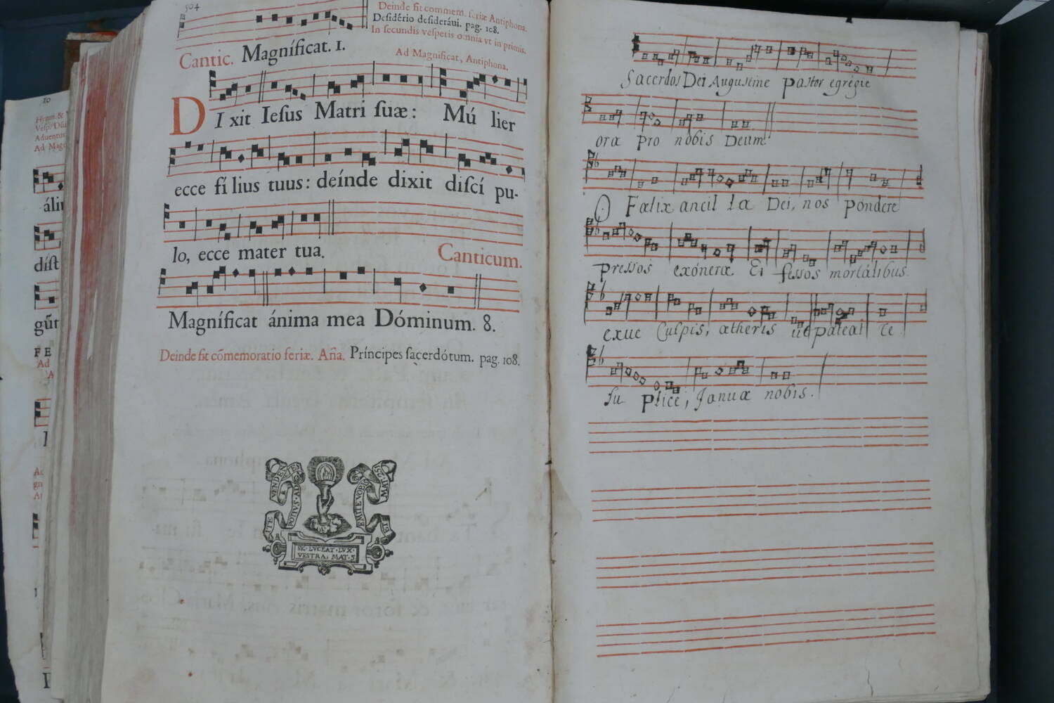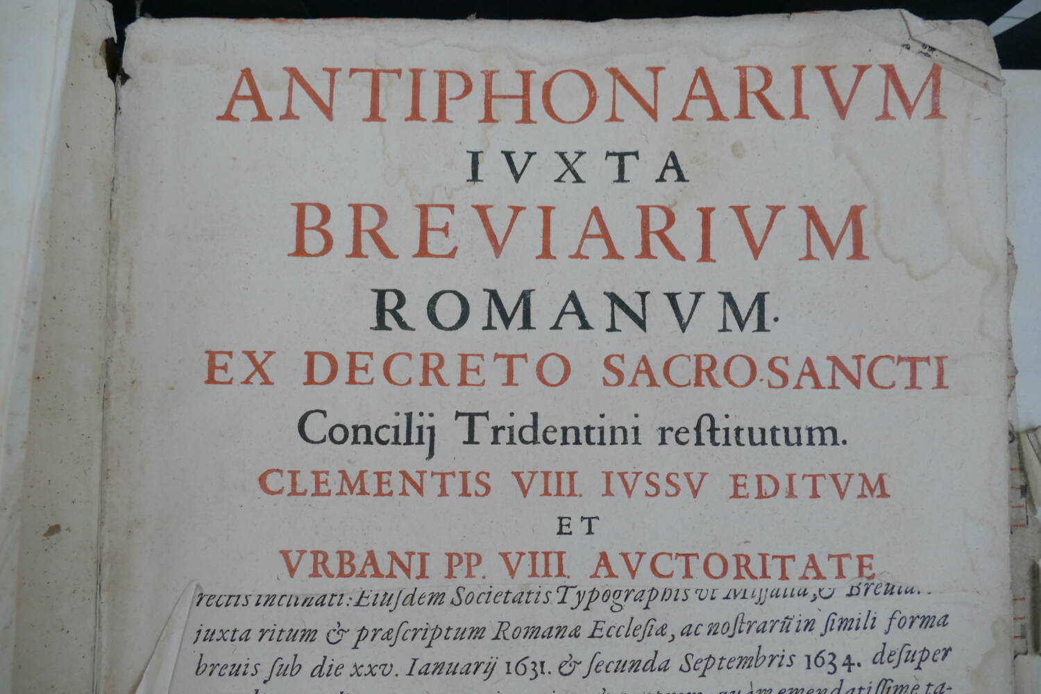 Il s’agit ici d’un livre dont les textes et chants ont été publiés sur ordre des papes Clément VIII (1536-1605) puis Urbain VIII (1568-1644), tous deux proches de Philippe Néri fondateur de la congrégation de l’Oratoire. Philippe Néri était le directeur de conscience et le confesseur du pape Clément VIII, et c’est à Urbain VIII que l’on doit l’officialisation par bulle papale de sa canonisation. Cette mention portée en début de l’ouvrage rattache indiscutablement l’antiphonaire à la présence des oratoriens à Effiat dès 1627 et l’usage de l’église comme chapelle de la congrégation.