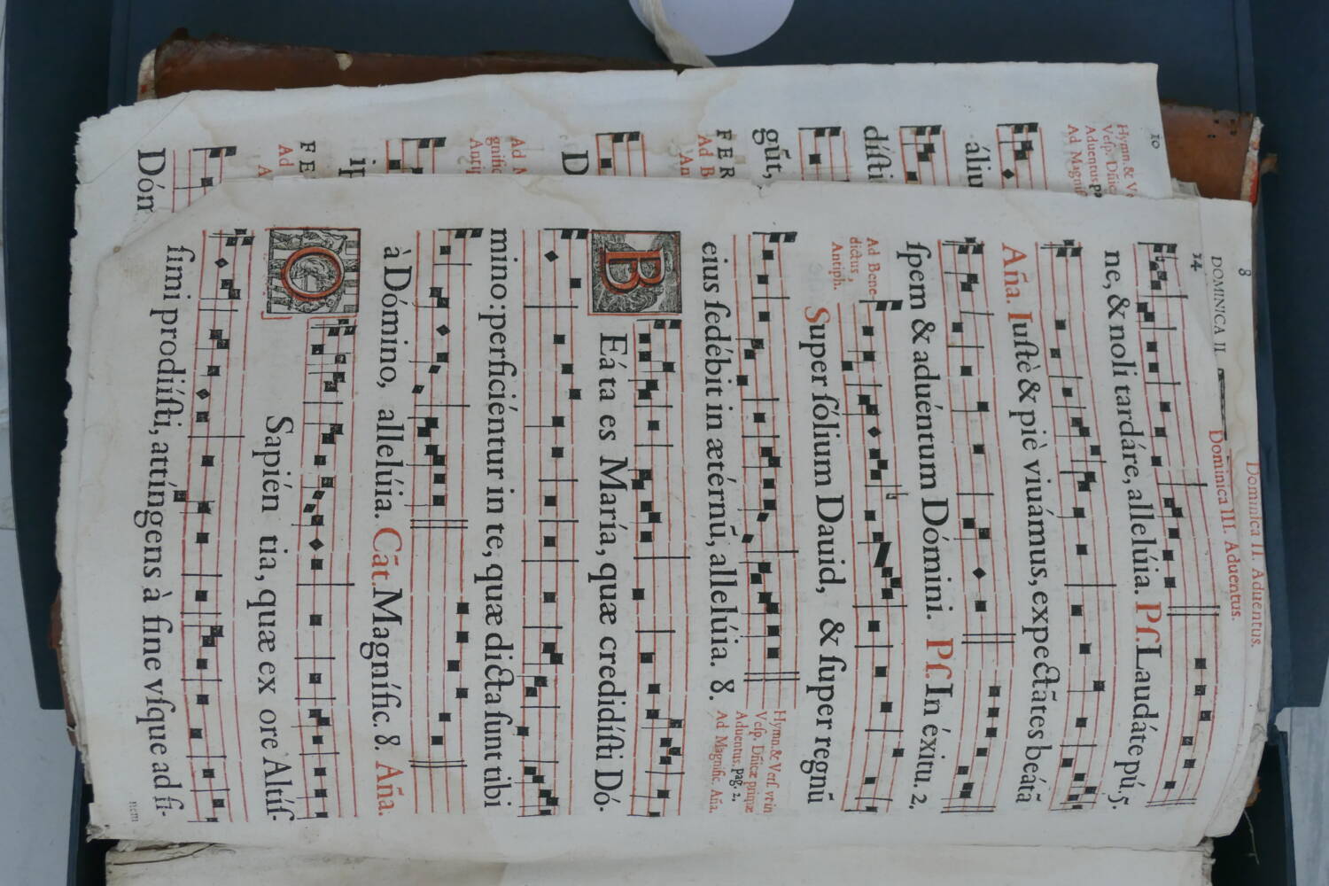 L’église Saint Blaise constitue un rare témoin de cette grande architecture classique religieuse dans le département. Ce patrimoine fait aujourd’hui l’objet d’une attention toute particulière de la municipalité d’Effiat qui souhaite engager une restauration de l’ensemble de l’édifice. Ce projet d’envergure est l’occasion de s’intéresser à l’important ensemble mobilier religieux, inventorié en 2016 par la Commission diocésaine d’art sacré et au sein duquel subsiste des éléments témoins de cette prestigieuse histoire effiatoise. C’est notamment le cas d’un très beau livre de chants, ou antiphonaire, imprimé en 1656.