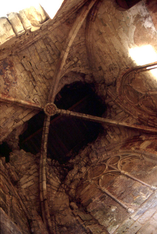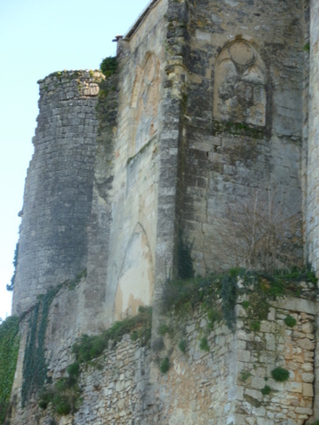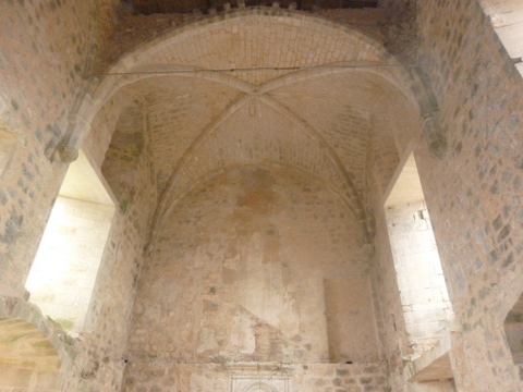 Le dossier proposé à la Sauvegarde de l’Art français est celui de la chapelle du château. Au revers de l’enceinte, entre la tour nord-ouest et la tour nord, s’élevait le logis médiéval dont il ne reste que les murs extérieurs : le rez-de-chaussée avait une fonction résidentielle, « comme en témoigne une large fenêtre à coussiège », notait Léo Drouyn, tandis que l’étage est identifié comme la grande salle médiévale. Celle-ci communiquait avec un petit oratoire construit dans la partie haute d’une tour de plan carré, en saillie par rapport au rempart, à l’ouest du logis. Pour Léo Drouyn, la tour était construite sur deux arcs en demi-berceau prenant eux-mêmes appui sur un muret élevé sur l’escarpe du fossé… Cette chapelle est couverte d’une voûte sur croisée d’ogives et arcs doubleaux, reposant sur des chapiteaux à feuillages. Une très belle clef ornée d’un feuillage enserrant une tête, actuellement déposée, sera remise en place. La chapelle était éclairée par deux baies en arc brisé, la plus large comportant trois lancettes surmontées de trois quadrilobes, la seconde de deux lancettes surmontées d’un quadrilobe : les remplages de ces fenêtres, parfaitement lisibles de l’extérieur, sont de qualité. Ces réseaux, condamnés par mesure de sécurité, seront dégagés. Les murs portent encore les traces d’un décor polychrome, à dominante rouge. L’ensemble de la chapelle, dont la surface est d’environ 22 m², pourrait dater de la fin du XIIIe ou du début du XIVe siècle. Son histoire est peu documentée ; cependant la visite pastorale de l’archevêque de Bordeaux, le 18 juillet 1783, nous assure qu’elle était en usage à cette époque. Parmi les objets liturgiques attachés à l’exercice du culte, Mgr Champion de Cicé notait alors un calice et une patène en vermeil. Dans le compte rendu, il est noté que « la chapelle est de toute ancienneté, » bien que la date n’en fût pas précisément connue.