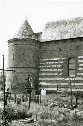 Église paroissiale Saint-Martin. Cet édifice est un bel exemple d’église rurale fortifiée construite entièrement en briques. Elle semble dater du premier tiers du xviie s. Les deux tours de la façade occidentale ont été inscrites à l’inventaire supplémentaire des Monuments historiques par arrêté du 13 juin 1932. Nous avons reçu de Monsieur J.-J. Plantinet, architecte DPLG, un rapport très complet sur l’histoire et les particularités de cette église. Nous en extrayons les renseignements suivants. Les deux tours rondes qui défendent la porte d’entrée avaient jadis leur réplique au chevet. Un escalier de façade a disparu mais il subsiste à l’intérieur une cheminée témoignant d’une occupation prolongée en temps de guerre. « Son plan original est un rectangle flanqué de quatre tourelles comme à Parfondeval, village voisin ; la forme des archères, simples fentes verticales, à l’extérieur, les bretèches ménagées au-dessus des fenêtres du chœur, les motifs des briques vernissées : cœurs, entrelacs, quadrillages visibles sur les tours occidentales, tout concourt pour placer la construction dans le premier tiers du xviie s. » L’association des églises fortifiées de la Thiérache nous a demandé une subvention de 25 000 F pour des travaux de toiture et de gros œuvre. Il en a été ainsi décidé, à charge pour l’association de contrôler la bonne exécution des travaux.