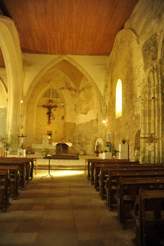 Pendant les guerres de Religion, l’édifice est incendié et le sinistre entraîne, comme en de nombreux autres endroits, l’effondrement des voûtes de la nef puis celles du bas-côté nord qui n’étaient plus contrebutées. Seuls demeurent les piles à nervures engagées et les formerets. En dépit de la trace de ces destructions, l’intérieur de l’église se caractérise par de grandes arcades et un arc diaphragme au profil brisé dont la qualité du dessin et la finesse de profil des nervures confèrent une grande élégance aux volumes.