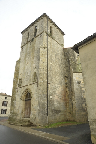 Le site, de très ancienne implantation, comme en témoignent les nombreux vestiges gallo-romains retrouvés dans les alentours proches, est à maintes reprises qualifié de villa dans les sources au Haut Moyen Âge. Les revenus de cette dernière sont cédés en 669 par Chilpéric II à la cathédrale du Mans. D’origine priorale, l’église remonte à la fin du XIIe siècle. De cette période date l’admirable programme sculpté de la façade occidentale organisé en trois groupes, l’Annonciation et la Visitation, surmontés par la figure d’un cavalier, référence à l’empereur Constantin souvent utilisée sur les façades des églises de Charente et de l’ancien Bas-Poitou.
