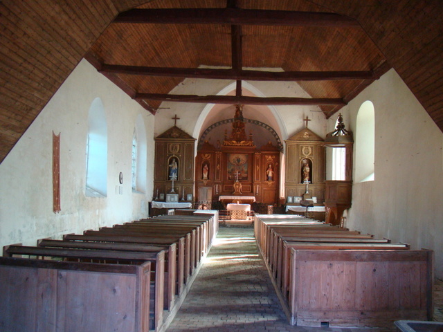 L’église est composée d’une nef de quatre travées. Sur la première travée, se trouve un clocher charpenté sur tabouret, couvert en ardoises. La voûte est lambrissée en berceau. Le chœur, plus étroit, et plus bas, se termine par une abside en demi-cercle. L’édifice est couvert de tuiles plates et ses murs sont en moellons enduits.