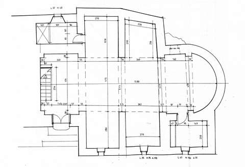 Postérieurement, quatre chapelles latérales voûtées en berceaux brisés transversaux ont été construites et ouvertes sur la nef. L’éclairage indirect de la nef provient maintenant des petites fenêtres quadrangulaires percées au sud dans les murs de ces chapelles. Les traces visibles de ces reprises sont manifestées par les coups de sabre et les jonctions maladroites des massifs de maçonnerie.