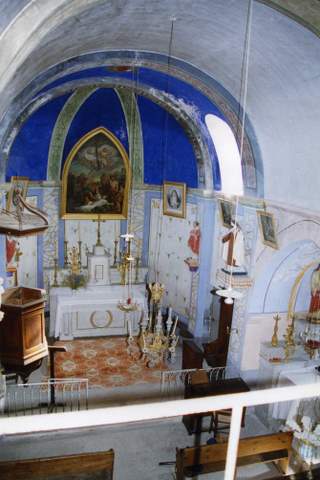 L’intérieur de l’église a reçu alors un intéressant décor peint, pilastres en faux marbre et arcs en trompe-l’œil dans des tonalités vert-amande et or argenté. Cette réalisation est due à un artiste local qui a aussi décoré dans les Baronnies les églises voisines de Rochebrune et de Bonnevay-Ollon. Les fonts baptismaux, la chaire et un meuble de sacristie sont classés Monuments historiques.