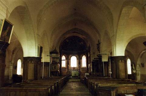 L’édifice de grandes dimensions s’élève sur un terre-plein. La base du clocher forme un avant-corps couronné d’un fronton triangulaire. La porte d’entrée cintrée est surmontée d’un cartouche orné de deux angelots dans un nuage . Le premier niveau de la tour est percé de baies cintrées. Ses angles sont flanqués de pilastres engagés à chapiteaux corinthiens. Des corniches moulurées couronnent son sommet coiffé d’une flèche en égout. La nef et les bas-côtés sont abrités par une toiture unique. Les façades latérales, très sobres, sont scandées de baies cintrées et de contreforts à glacis. A l’intérieur, la nef centrale ouvre sur les collatéraux par de grands arcs brisés. Elle est couverte d’une voûte en berceau brisé portée par de gros arcs doubleaux. L’abside voûtée d’un cul-de-four et de voûtes en pénétration est précédée d’une travée droite percée au nord et au sud de lunettes. Le mobilier date du XVIIIème siècle. Deux retables de grande qualité décorative, sculptés et peines, de part et d’autre de la travée de chœur, représentent saint Nazaire et saint Celse, martyrs, et saint Andoche, apôtre d’Autun. L’intrados de l’arc triomphal est couvert de peintures murales. Le chœur a été entière ment décoré et meublé au XVIIIème s. : il est scandé de six pilastres en faux marbre ; les pilastres sont sommés de chapiteaux ioniques. Le cul-de- four est décoré d’un Saint-Esprit dans une gloire. Quarre toiles peintes dans des cadres moulurés, en stuc, avec des agrafes de style rocaille figurent les pères de l’Église d’Occident : saint Jérôme, saint Grégoire, saint Ambroise et saint Augustin. Le maître-autel est formé d’un élégant tombeau à profil galbé en marbre polychrome du XVIIIème s. avec, au centre, un cœur enflammé, symbole augustinien de la Charité. Un tabernacle aux angles décorés d’ailerons à volutes complète cet ensemble remarquable. L’église possède également une chaire à panneaux sculptés et peines à l’or, un banc d’œuvre et un Christ en croix du XVIIème siècle. La Sauvegarde de l’Arc Français a accordé une subvention de 110 000 Fen 1995 pour la restauration des maçonneries du clocher et pour celle de la façade occidentale avec ses ailerons.