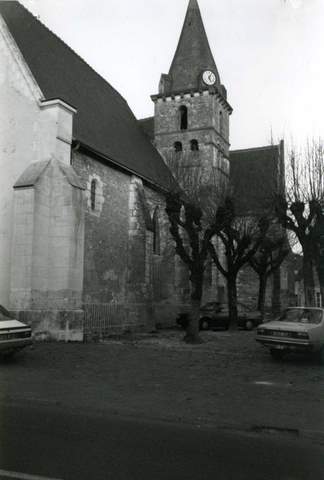 Placée sous le vocable de saint Romain, l’église paroissiale d’ Athée-sur-Cher était à la présentation alternative de l’archevêché de Tours et de l’abbaye Saint-Julien-de-Tours. La cure constituait un fief relevant de la seigneurie de Chenaie-Athée. L’église actuelle, vraisemblablement édifiée sur une structure antérieure, remonte pour ses parties les plus anciennes au XIIe s. De cette époque datent la façade, le mur gouttereau méridional et le clocher construit sur le flanc sud de l’édifice, à la jonction de la nef et de l’avant-choeur. Au XVIe s., plusieurs campagnes successives de travaux modifièrent profondément le plan initial : le chœur, totale ment remanié, fut reconstruit dans le style gothique flamboyant ; ses deux travées droites et son abside à trois pans ainsi que la chapelle sud furent routes couvertes de voûtes sur croisées d’ogives dont certains éléments décoratifs furent ajoutés au XIXe s. Parallèlement, l’agrandissement de l’église se poursuivait par la construction sur le flanc nord d’une part d’un collatéral de trois travées ouvrant sur la nef par de grandes arcades en tiers-point et formant pignons à l’ extérieur, et d’autre part d’une chapelle de deux travées, voûtée sur croisées d’ogives, formant également pignon à l’extérieur. Ces pignons, épaulés par de puissants contreforts entre lesquels s’ouvrent de grandes baies au remplage flamboyant, confèrent par leur unité de style un certain rythme à ce côté de l’édifice. Il est vraisemblable que les travaux effectués dans le chœur vers 1635 par Philippe Sallier, seigneur de la Chenaie, indication fournie par Carré de Busserole, aient davantage été de restauration que de conception. Par la suite, au XIXe s., d’importants travaux se succédèrent : le beffroi fut restauré en 1821, l’intérieur de l’église entre 1838 et 1841, le mur-pignon et la charpente de la nef en 1866-1867, le chœur en 1876. Des travaux de maçonnerie s’avéraient nécessaires sur la façade ouest de la chapelle sud et son contrefort sud-ouest ainsi que sur la façade sud du clocher qui a gardé son aspect massif du XIIe s. A cette fin, la Sauvegarde de l’Art Français a accordé en 1994 une aide de 20 000 F..