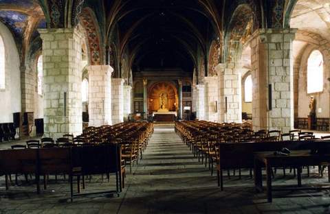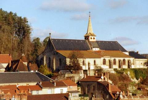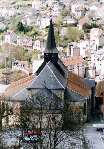 Église Sainte-Croix du Mont est bâtie sur une plate-forme de la première enceinte à l’ouest du château vicomtal. C’est un vaste édifice (près de 60 m de long et 20 m de large) qui remonte au XIIIe s. mais qui résulte dans son état actuel d’une reconstruction au XVII’ s., suivie de reprises et d’agrandissements aux XVIIIe et XIXe. C’est en tout cas le seul monument religieux ancien de la ville. Il a remplacé Notre-Dame du Mont comme église paroissiale au XVe siècle. Celle-ci, devenue collégiale, fut détruite en 1807-1808. Selon la tradition, la construction primitive aurait été entreprise par un des vicomtes au retour de la seconde ou de la troisième croisade pour abriter une relique de la « Vraie Croix » rapportée de Terre Sainte. Celle-ci était conservée dans le trésor de l’église et vénérée le jour de l’invention de la Croix, choisi comme fête patronale d’Aubusson. L’église comprend trois vaisseaux terminés à l’est, sans l’intermédiaire d’un transept, par un chœur rectangulaire inventé au XIXe siècle. Les travaux de reconstruction consécutifs aux guerres de religion ont été effectués en deux campagnes principales: les trois premières travées de la nef et des collatéraux sans doute dès 1611 ; les quatre suivantes dans la seconde moitié du XVIIe s., sous la direction de Jean Verduier de Laplante. Le grand escalier qui termine la montée vers l’église fut entrepris en 1690. Le vaisseau central, couvert de croisées d’ogives prismatiques ou de voûtes d’arêtes, est séparé de ses larges collatéraux, également voûtée d’arêtes, par de puissants piliers carrés, aux angles chanfreinés. Leur rythme et ces larges espaces assez bas confèrent aux trois vaisseaux une certaine solennité. Les trois premières travées bénéficient de doubleaux. Elles sont surmontées d’une tribune qui abritait jadis une confrérie de Sainte-Croix. Les suivantes n’en possèdent que sur le vaisseau central. La porte d’accès de l’église, située au nord , en raison de la déclivité du terrain, qui rend impraticable la façade occidentale, a été remontée avec des éléments d’une porte du XIIIe siècle. L’église abrite un mobilier remarquable par sa variété et sa qualité ; il provient en majeure partie des sanctuaires des environ s supprimés à la Révolution. Les vitraux commandés à Tours en 1875 à l’atelier du maître-verrier Fournier constituent un ensemble intéressant. La Sauvegarde de l’Art français a accordé une subvention de 150 000 F en 1998 pour la réfection de l’ensemble des toitures, en fort mauvais état (première tranche de travaux).